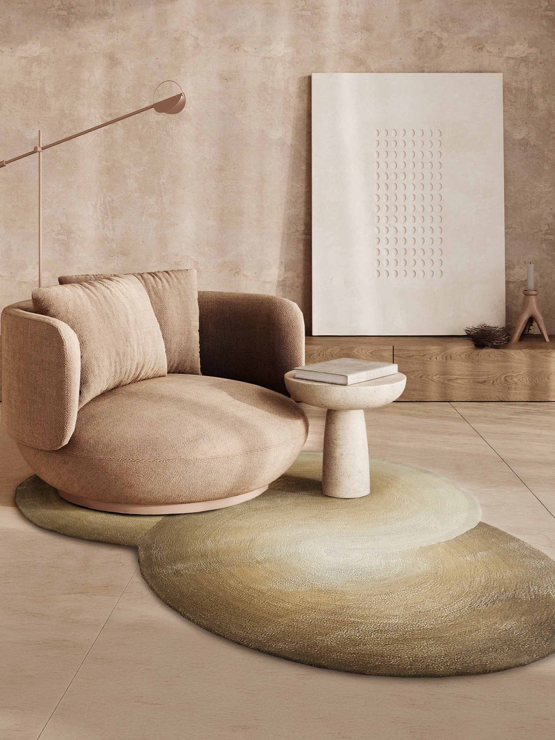 Use:The Mitomo Collection brings a sense of fluid artistry to modern interiors. Hand-tufted from a luxurious blend of wool and bamboo silk, its design features a mesmerizing gradient and intertwining rounded shapes that evoke a gentle, flowing movement. The subtle sheen of the bamboo silk catches the light like ripples of water, adding a touch of understated elegance. This high-quality rug adds a touch of sophistication and visual intrigue to any space.