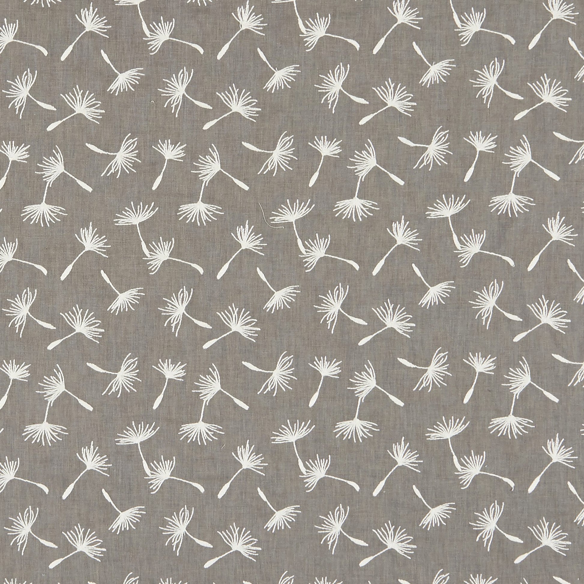 Use:Fun flowing cream tone of embroidered dandelion whisps on a gray base.