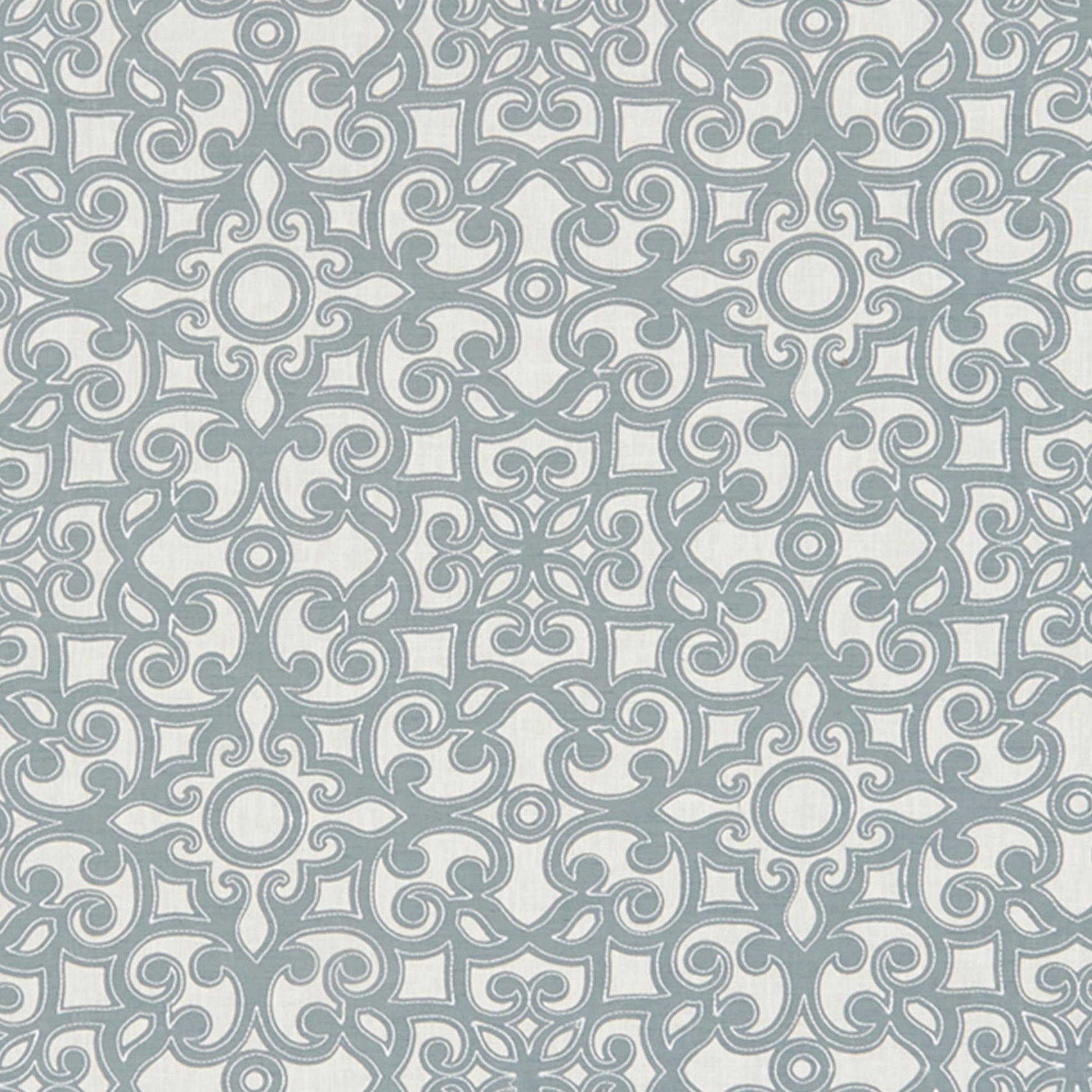 Use:Stylish trellis applique design on a polyester and cotton blend, steel blue on cream coloration.