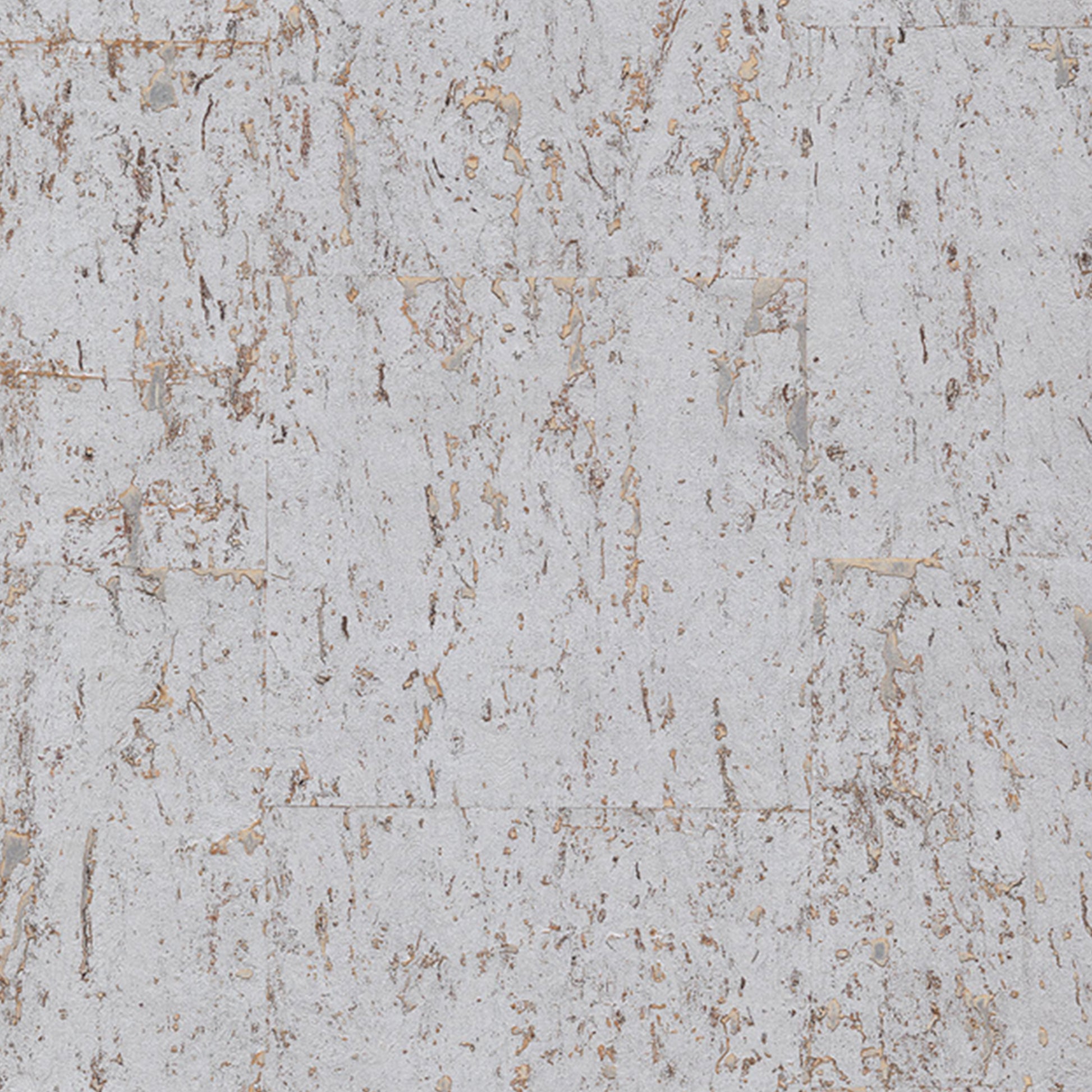 Use:Redefine walls in this authentic cork texture wallpaper where tiny silver pockets peek from behind its chic distressing, in a shimmering silver coloration.