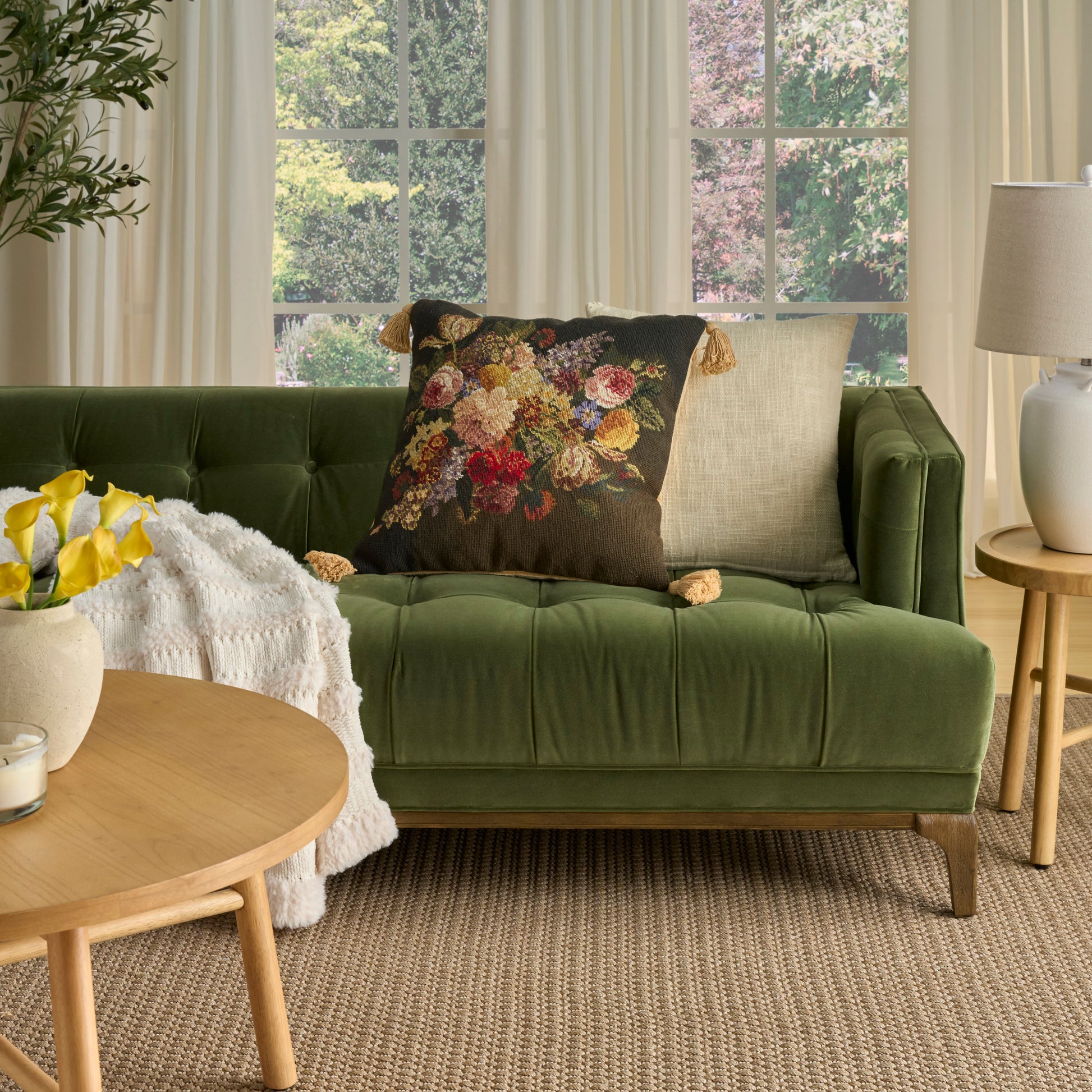 Construction/ Insert: Vintage-inspired throw pillows with handstitched patterns;Cotton cover with a velvet finish and wool petit point center panel;Available in a variety of colors, patterns, and sizes to complement a variety of seating arrangements;Some patterns do not include tassels;Please note: Our throw pillows are shipped in eco-conscious vacuum wrapping. When you first remove it from its wrapper, it may seem a little flat. Not to worry! To restore your pillow to its original, plump form, simply fluff it and let it sit for at least 24 to 48 hours;;