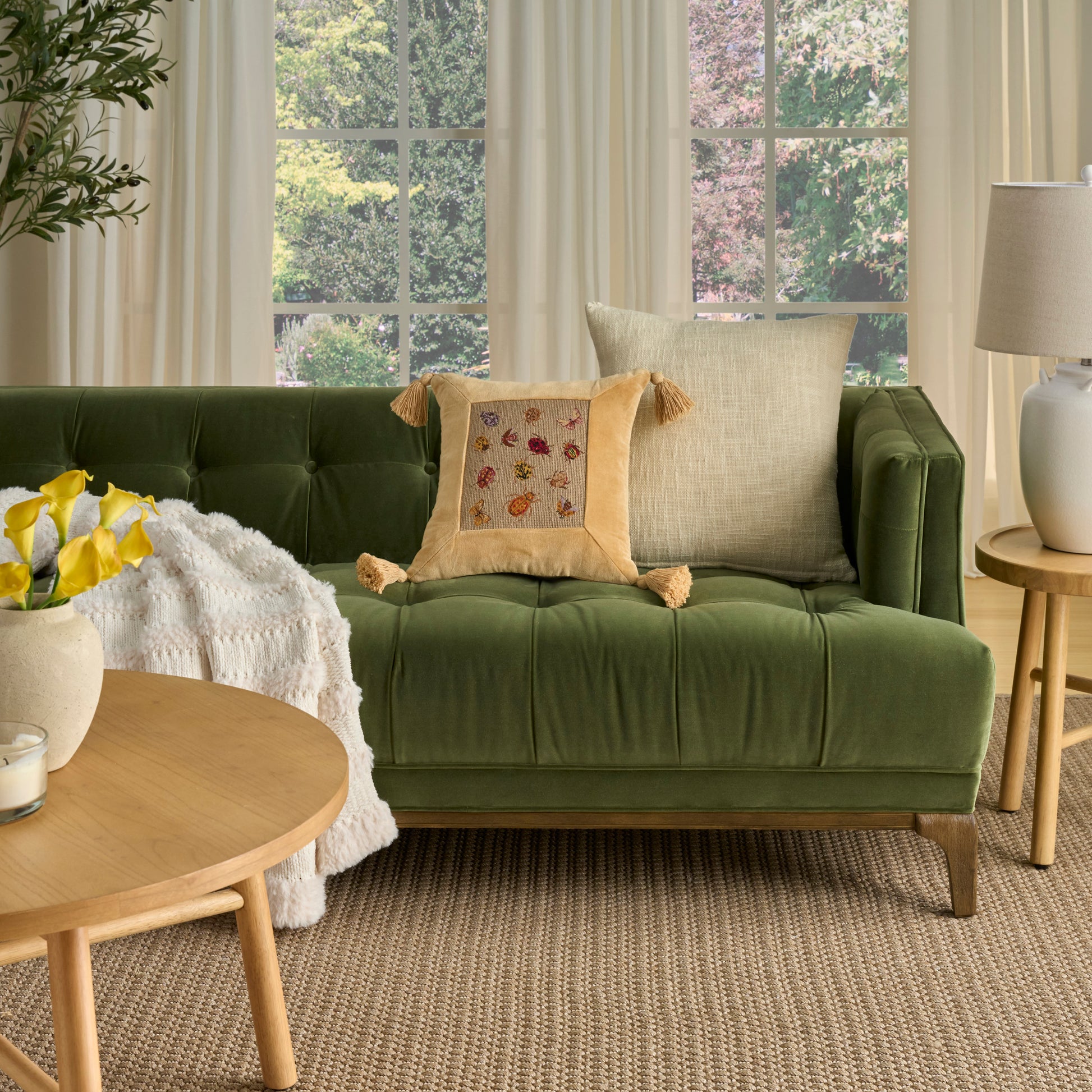 Construction/ Insert: Vintage-inspired throw pillows with handstitched patterns;Cotton cover with a velvet finish and wool petit point center panel;Available in a variety of colors, patterns, and sizes to complement a variety of seating arrangements;Some patterns do not include tassels;Please note: Our throw pillows are shipped in eco-conscious vacuum wrapping. When you first remove it from its wrapper, it may seem a little flat. Not to worry! To restore your pillow to its original, plump form, simply fluff it and let it sit for at least 24 to 48 hours;;