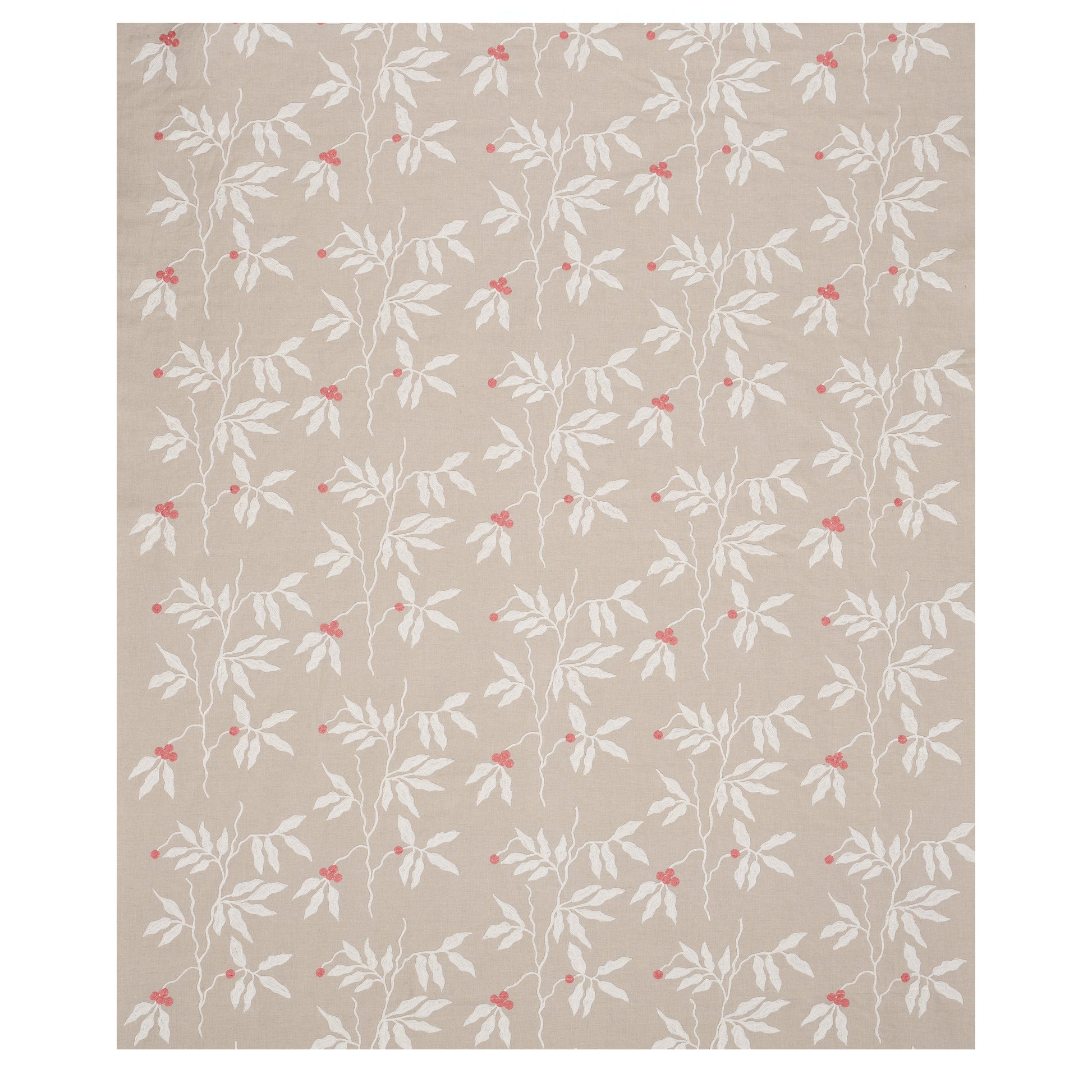 Use:With uncommonly large (nearly 11??) motifs, Lilla Embroidery in ivory-on-neutral is a traditional design with modern leanings. The cotton-and-linen fabric is embroidered with a concentric chain stitch that accentuates the stylized shape of the vivid branches and berries.