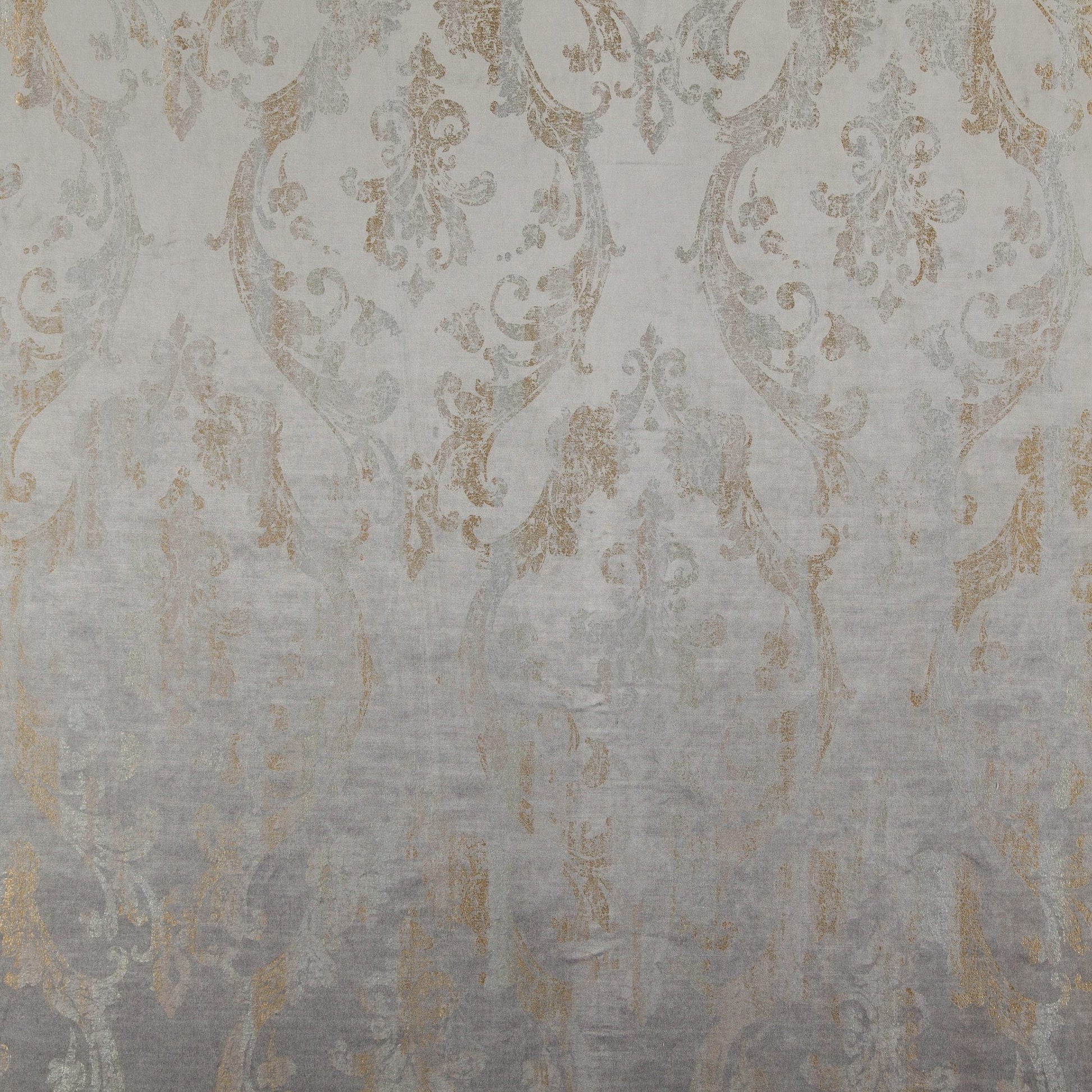 Use:Stunning mauve color velvet fabric with a glitzy silver and gold foil printed damask pattern.