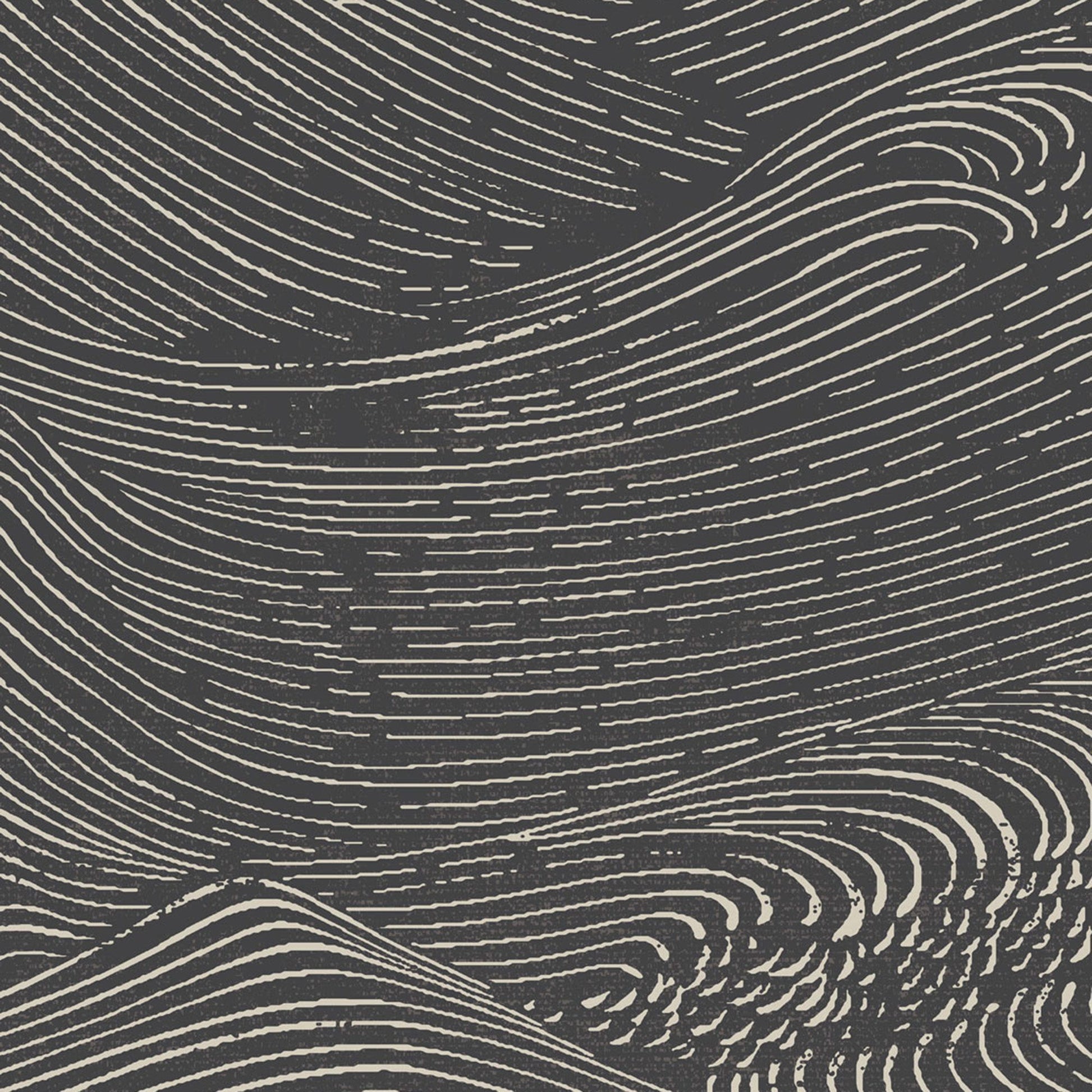 Use:Modern wave patterned wallpaper. Black matte ground with cream coloration.