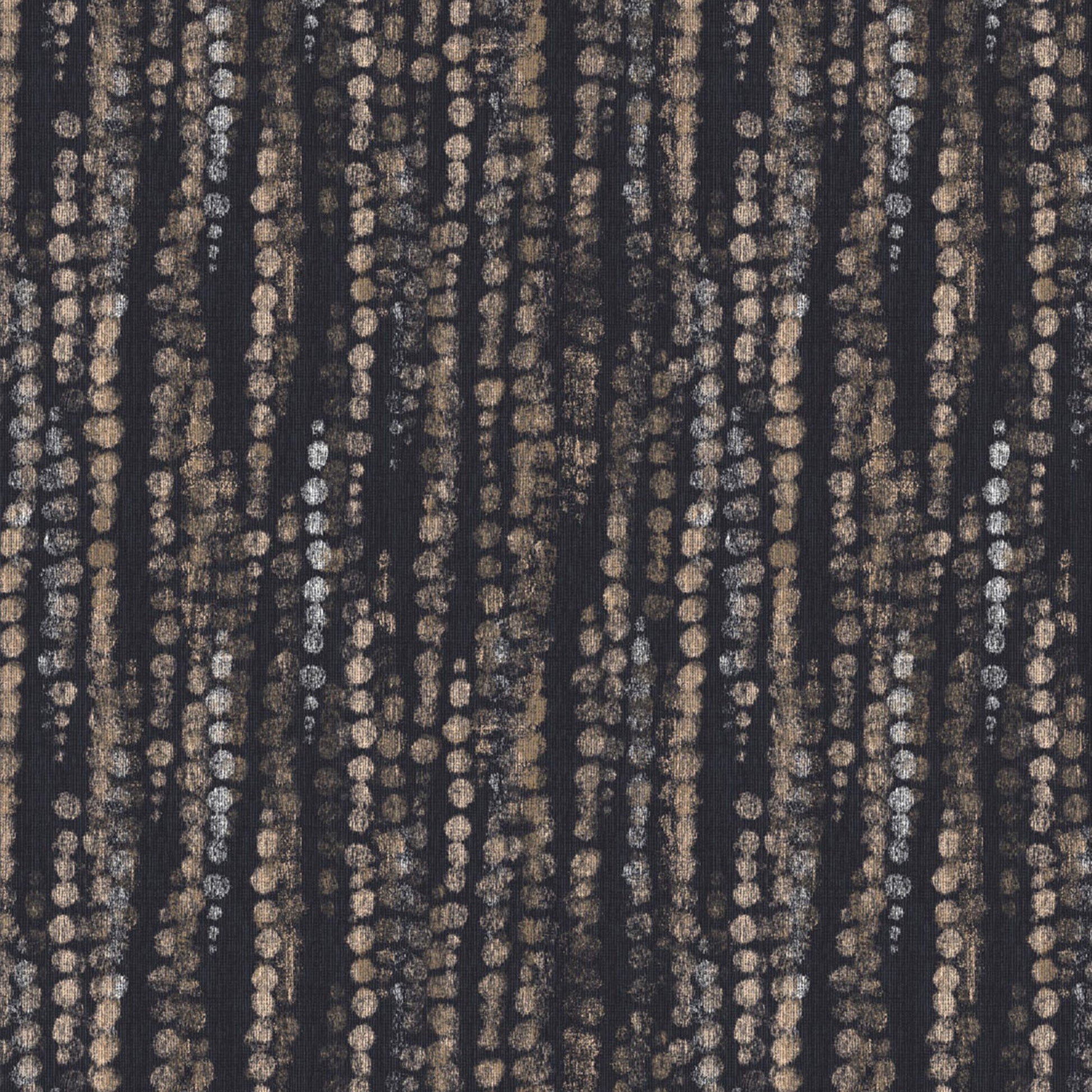Use:Metallic beaded rain design wallpaper with a navy blue ground and metallic copper and coral accents.