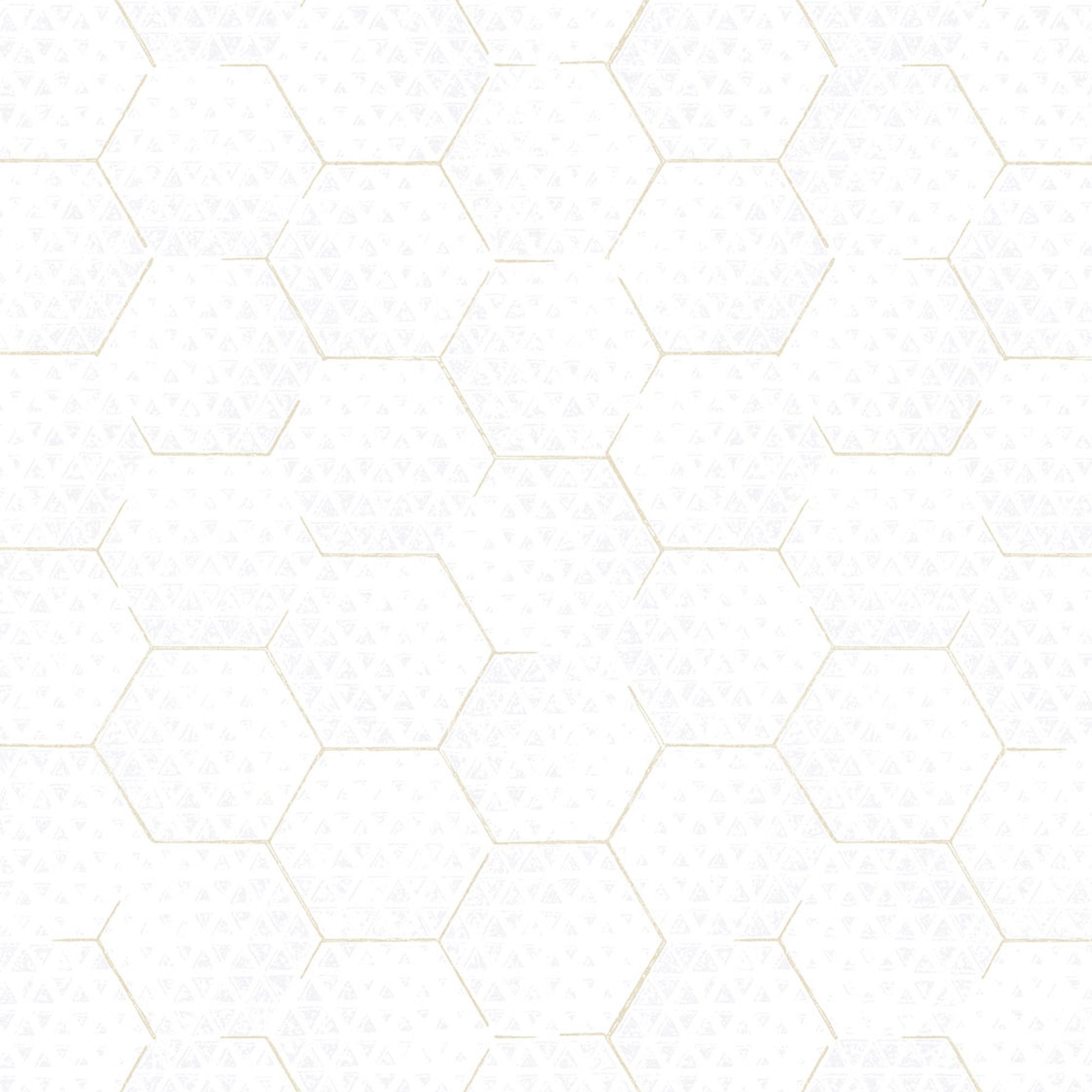 Use:Honeycomb patterned wallpaper. Cream ground with gold metallic design.