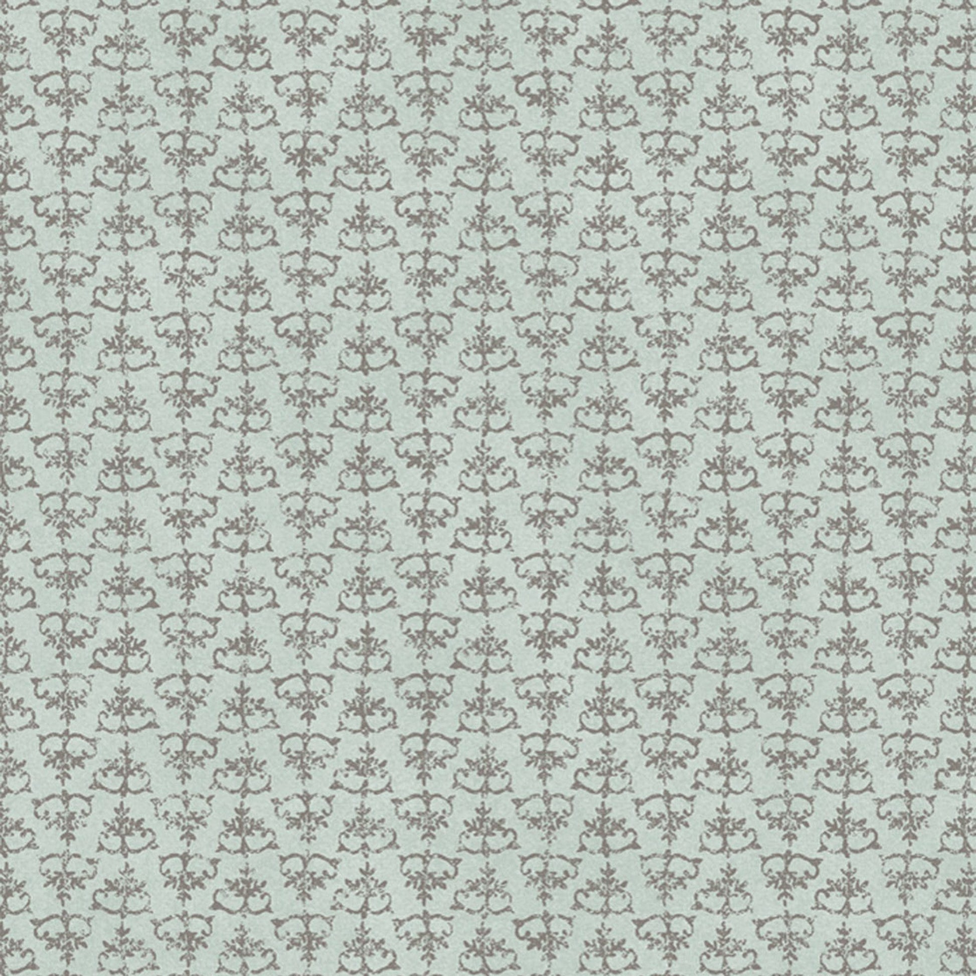 Use:A ditsy metallic damask wallpaper in a seafoam blue and taupe coloration.