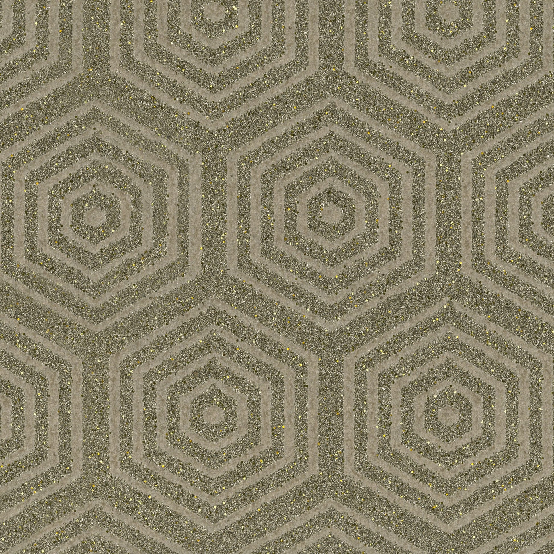 Use:Stunning geo pattern mica wallpaper. In sparkling hues of cocoa brown with gold metallic flecks.