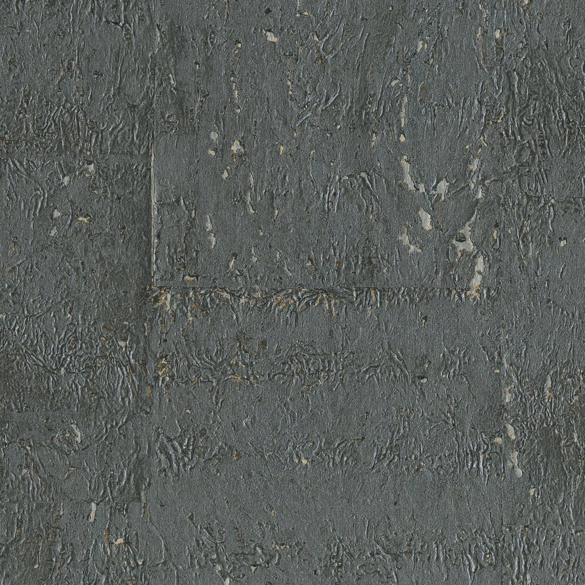 Use:Textural cork wallpaper. In hues of metallic gray blue and silver coloration.