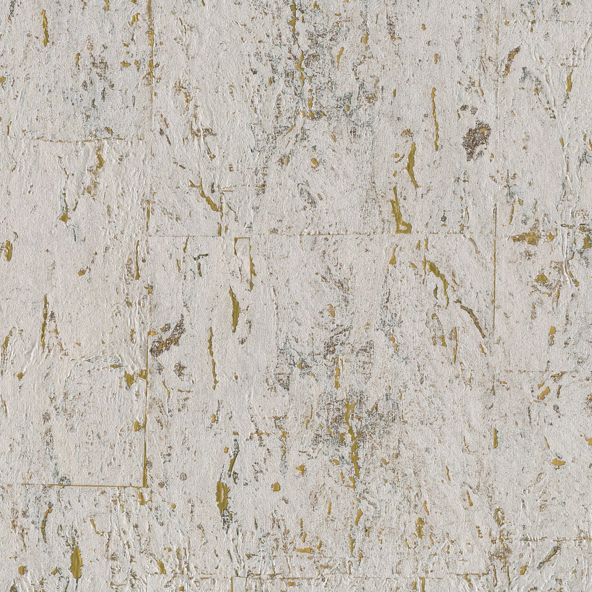 Use:Shimmering pearlescent silver cork wallpaper with metallic gold metal ground.
