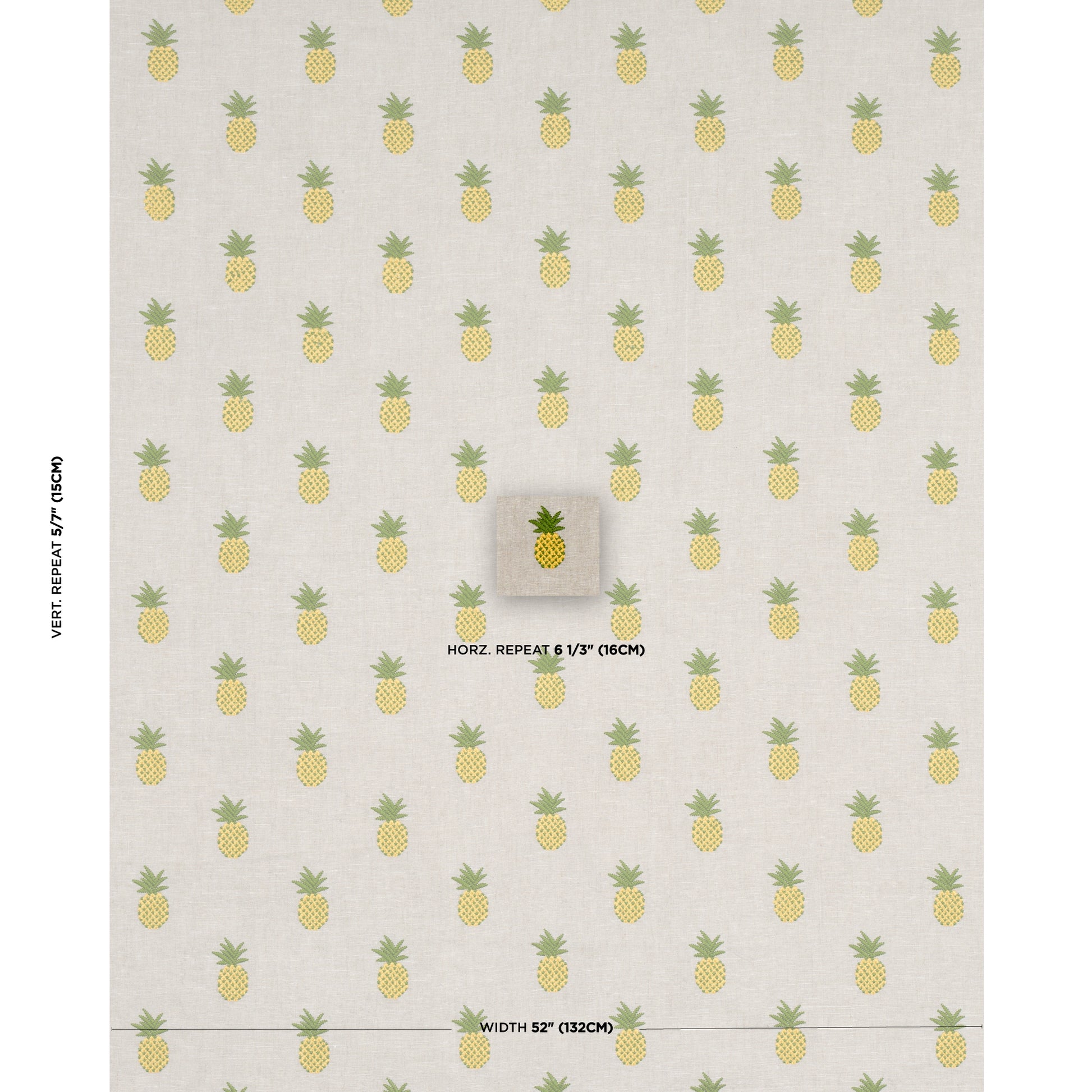 Use:Pineapple Embroidery in green-on-natural is a small-scale pattern stitched on a lovely linen ground. Capturing the fruit's unique diamond texture and spiky crown, this pint-sized pineapple fabric design lends tactile style and tropical flair to windows, upholstery and pillows.