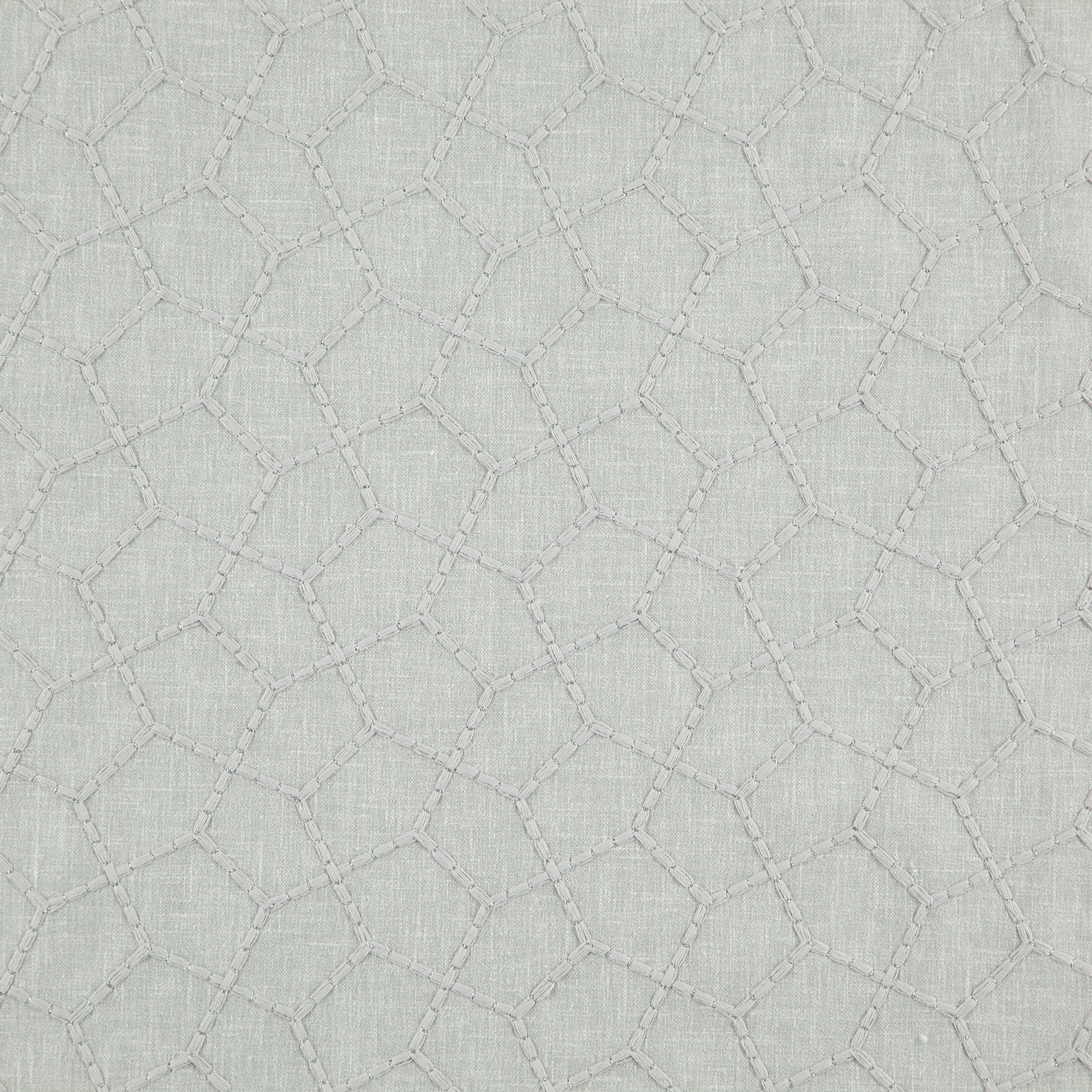 Use:Flecks of silver metallic yarns creating the look of sparkling gems on this embroidered geo pattern fabric. In a soft lavender coloration.