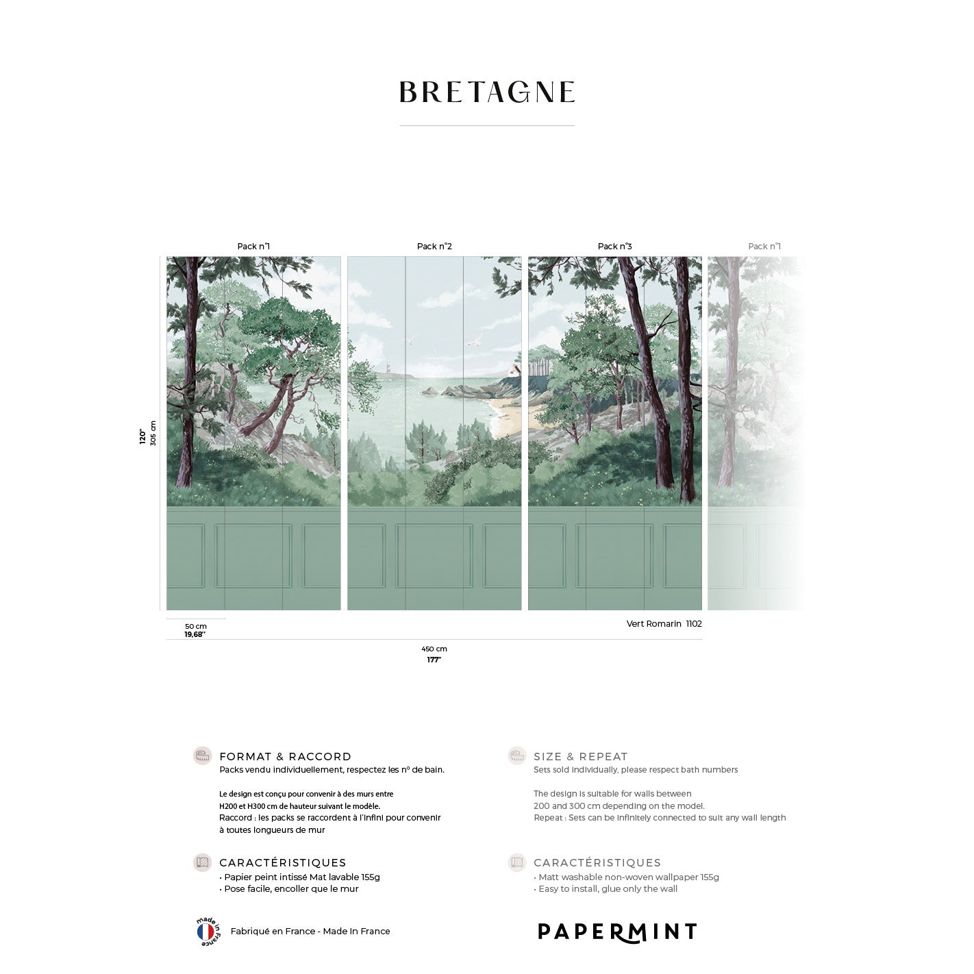 Printed on easy-to-install and easy-to-remove paste-the-wall non-woven wallpaper, "Bretagne" offers an effortless way to transform your space with the tranquil allure of the sea.
