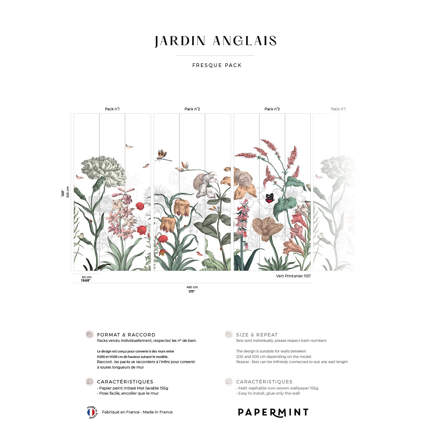 Veer Decor English Garden Pack 1, 2 & 3 in Green Wall Mural Botanical & Floral Mural Green Mural - 8184-BDL-BK1