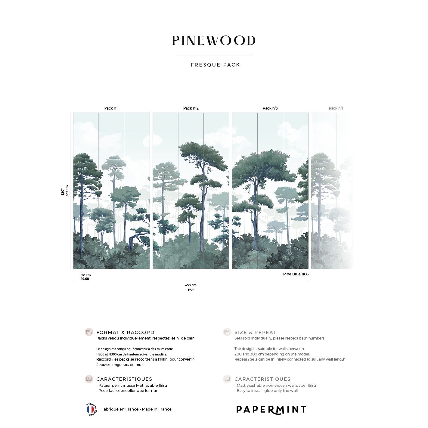 Use:Immerse your space in the tranquility of nature with our Pinewood wallpaper mural, a stunning depiction of towering pine trees set against a soft, airy backdrop. This beautifully detailed mural captures the serene beauty of a lush forest, evoking a peaceful and refreshing ambiance perfect for any living space, bedroom, or office. The varied hues and subtle depth of the design bring a sense of calm while adding an elegant statement to your d?????cor. Crafted with premium, easy-to-install (just paste the wall!), ultra-removable (in full strip!), designer matte, seam-free non-woven materials, the Pinewood Mural is designed for both beauty and practicality. It effortlessly complements your evolving style, offering a natural, timeless design that breathes life into any room.