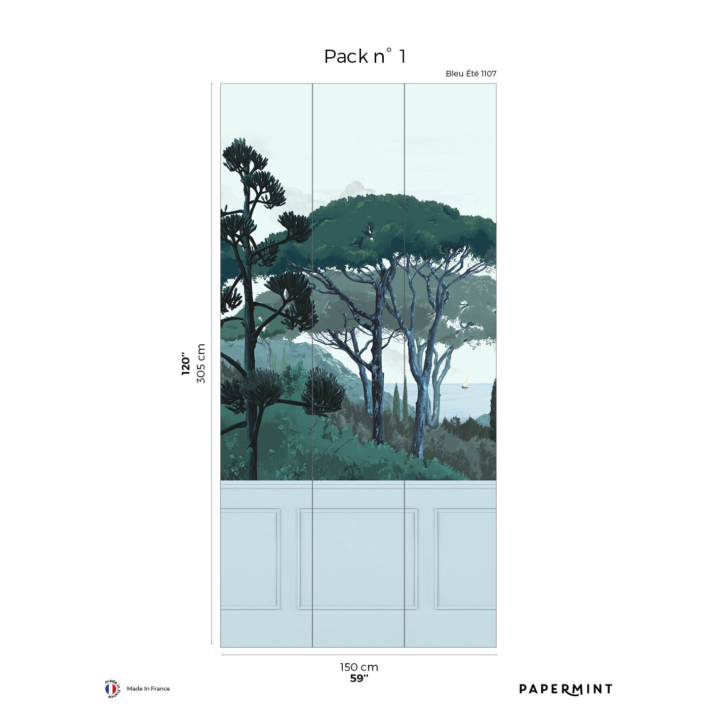 Use:Bring the charm of the Italian countryside into your home with our Tuscany Chair Rail wallpaper mural. This stunning mural features a lush landscape of Tuscany?s iconic pine trees and serene coastal views, rendered in calming shades of green and blue. As a unique design element, the mural includes a built-in faux wainscoting at the bottom, adding an elegant architectural touch that creates the illusion of chair rail paneling. Crafted from premium non-woven material, each panel is easily applied by simply pasting the wall, making for an effortless, easy-to-match, and seamless application. Each strip can be removed instantly in full strips. The matte finish delivers a sophisticated look, making this mural an ideal statement piece for living rooms, dining rooms, or any space in need of classic, nature-inspired elegance.