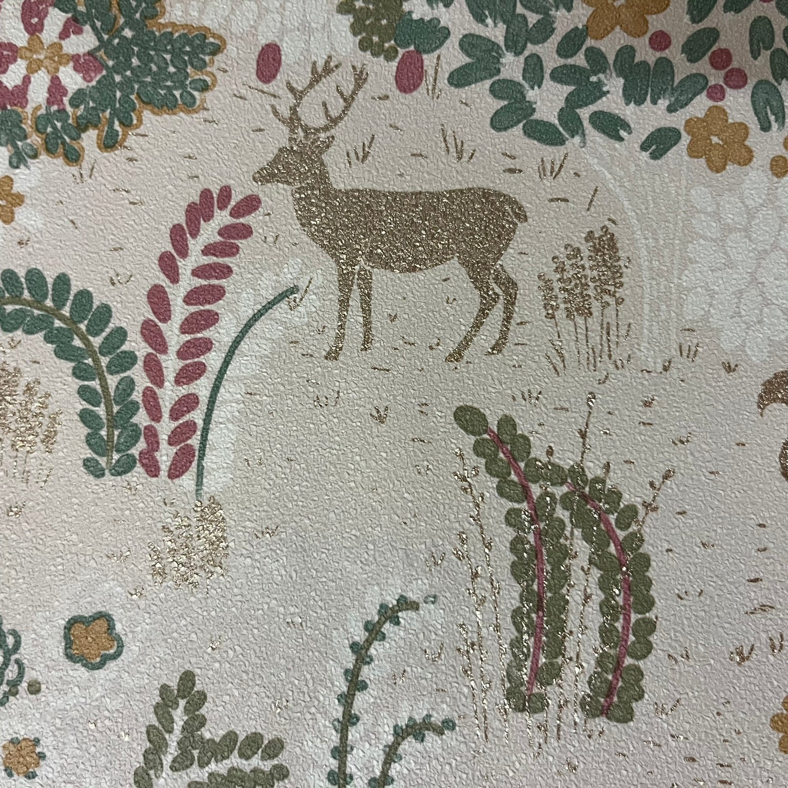 Use:Step into the enchanting garden of our Babylon Wallpaper, a whimsical design brimming with lush floral landscapes, delicate ferns, and charming woodland creatures. This intricate pattern evokes a sense of serenity and wonder. Select elements of the design, are infused with metallic inks, adding a subtle shimmer that catches the light and enhances the overall richness of the scene. The finely detailed illustrations create depth and movement, making Babylon Wallpaper a captivating choice for both feature walls and full-room applications. Crafted from premium materials, it offers a seamless finish with easy-to-align strips and clean removal in full strips for stress-free updates. Perfect for adding a touch of nature?s magic to living spaces, nurseries, or accent areas, Babylon Wallpaper transforms your walls into a storybook-inspired oasis that balances elegance and charm with radiant highlights..