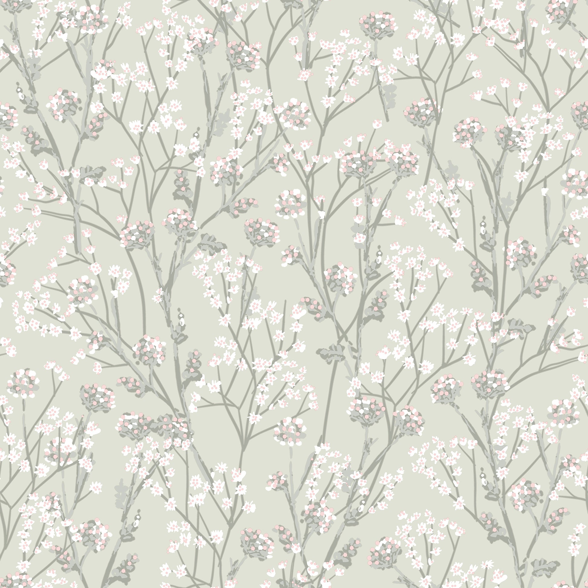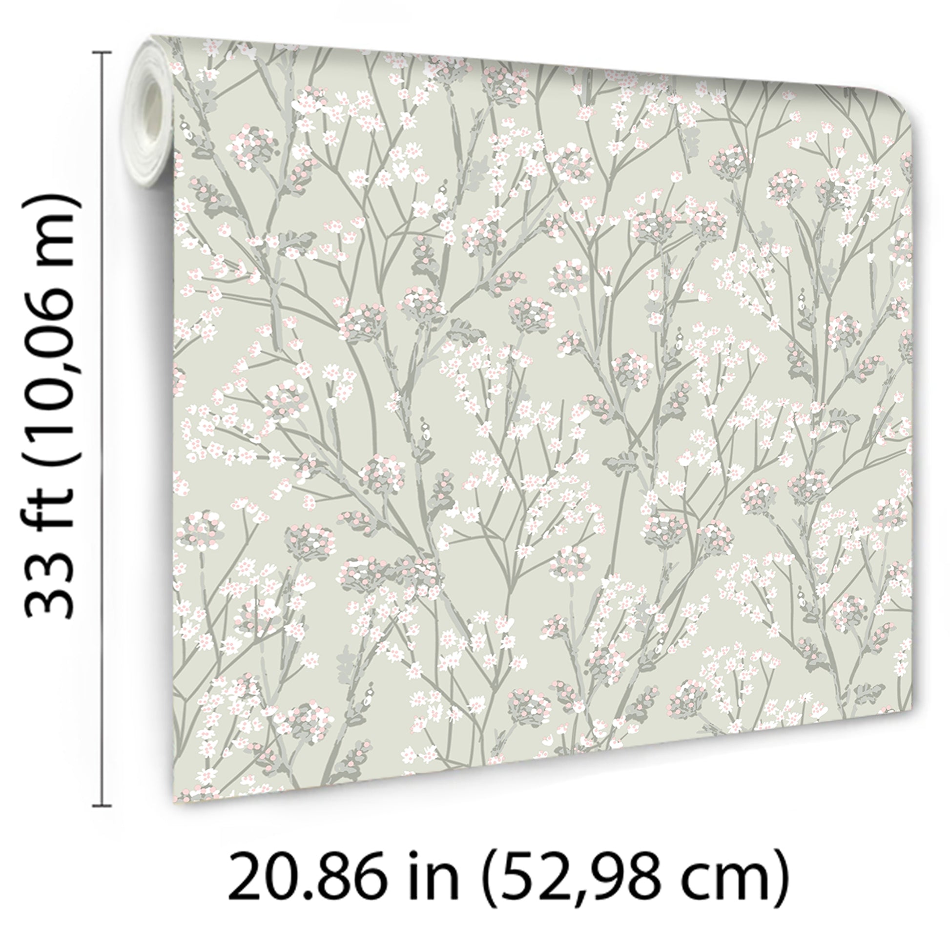 Pattern: 8195-AG4 / Blossom Branches Grey Green Wallpaper