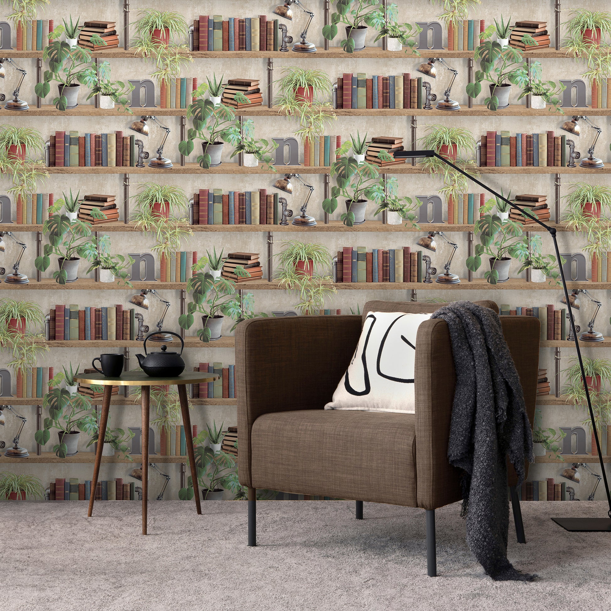 Veer Decor Industrial Book Nook Brown Wallpaper Novelty Novelty Brown Wallpaper - 8196-AK1
