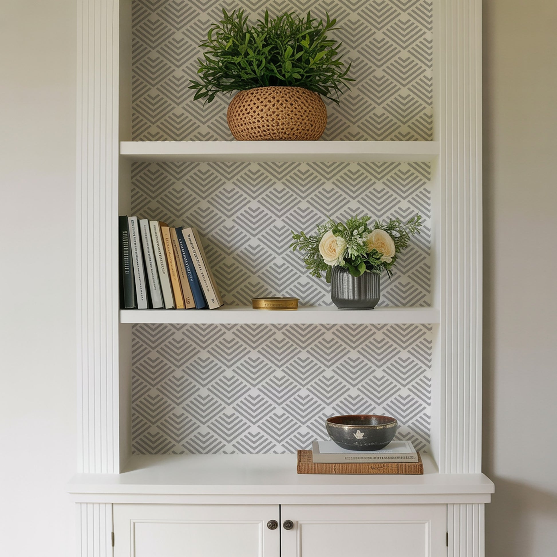 Veer Decor Geometric Chevron Diamond Gray Peel and Stick Wallpaper Abstract Modern Gray Wallpaper - 8228-AE2