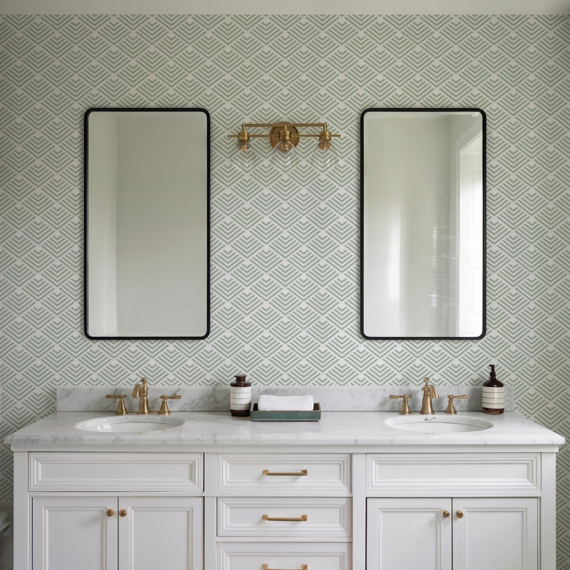 Pattern: 8228-AE3 / Geometric Chevron Diamond Green Peel and Stick Wallpaper