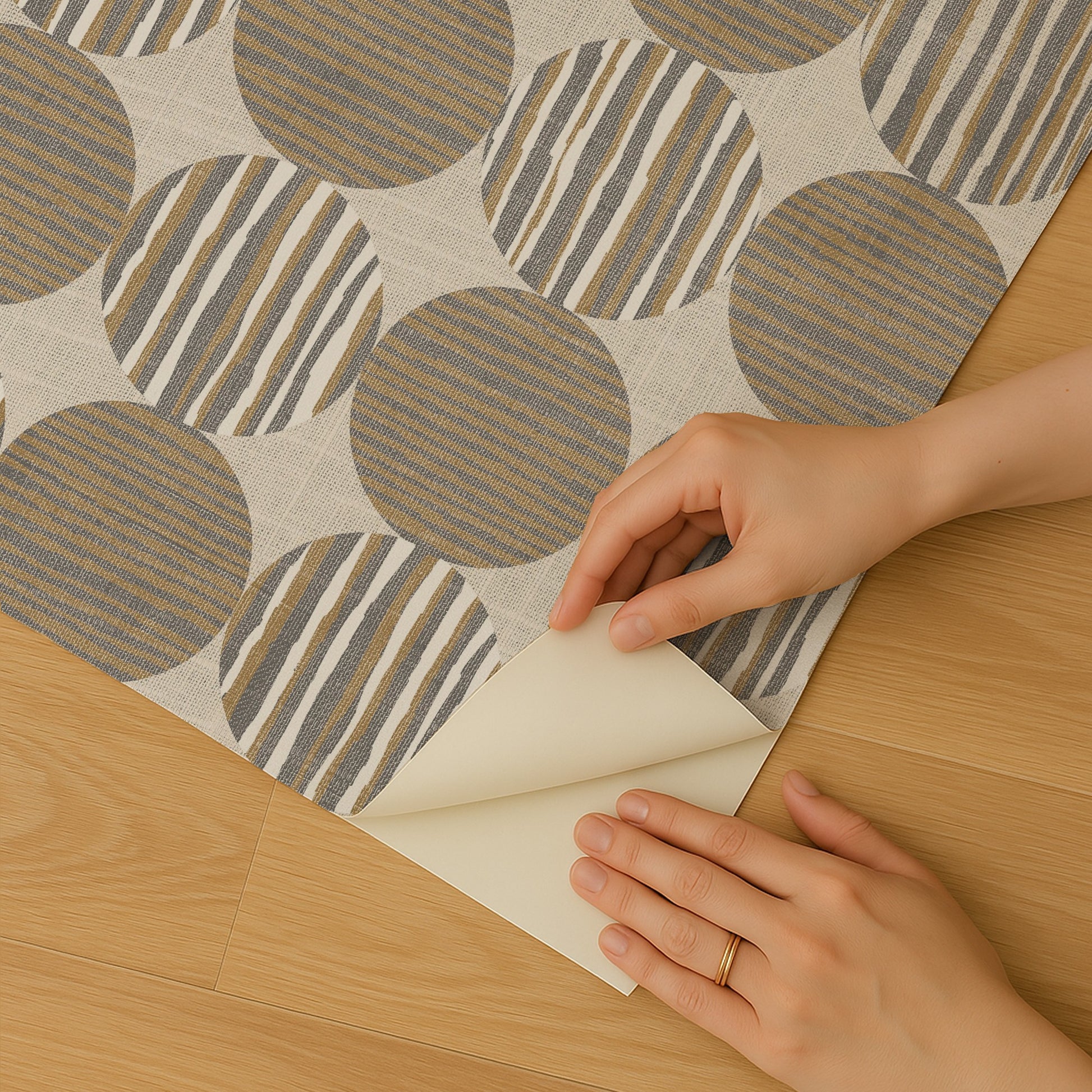 Use:Circles, textures and stripes collide in this playful yet sophisticated pattern, creating a sense of movement that draws the eye. The soft hues bring a fresh, organic feel that would work beautifully in a sunny kitchen or a serene bedroom. The peel-and-stick installation means you can transform your space in no time. The high-quality printing ensures crisp details and rich tones that will last. Whether you're looking to create a calming retreat or a conversation-starting accent wall, this wallpaper has the perfect balance of modern sophistication and timeless appeal. Enjoy effortless installation, worry-free removal, and stunning walls that reflect your distinctive style..
