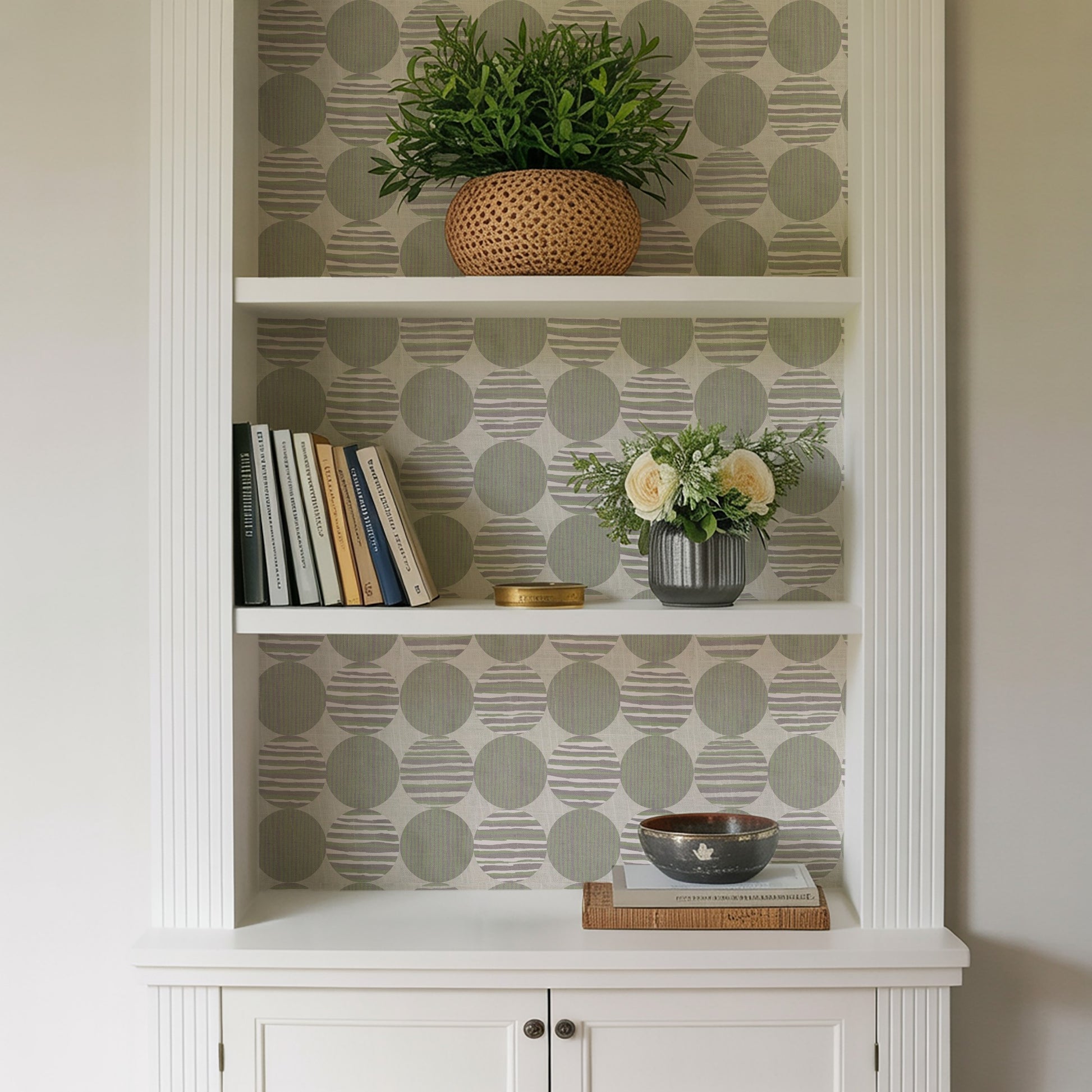Use:Circles, textures and stripes collide in this playful yet sophisticated pattern, creating a sense of movement that draws the eye. The soft hues bring a fresh, organic feel that would work beautifully in a sunny kitchen or a serene bedroom. The peel-and-stick installation means you can transform your space in no time. The high-quality printing ensures crisp details and rich tones that will last. Whether you're looking to create a calming retreat or a conversation-starting accent wall, this wallpaper has the perfect balance of modern sophistication and timeless appeal. Enjoy effortless installation, worry-free removal, and stunning walls that reflect your distinctive style..