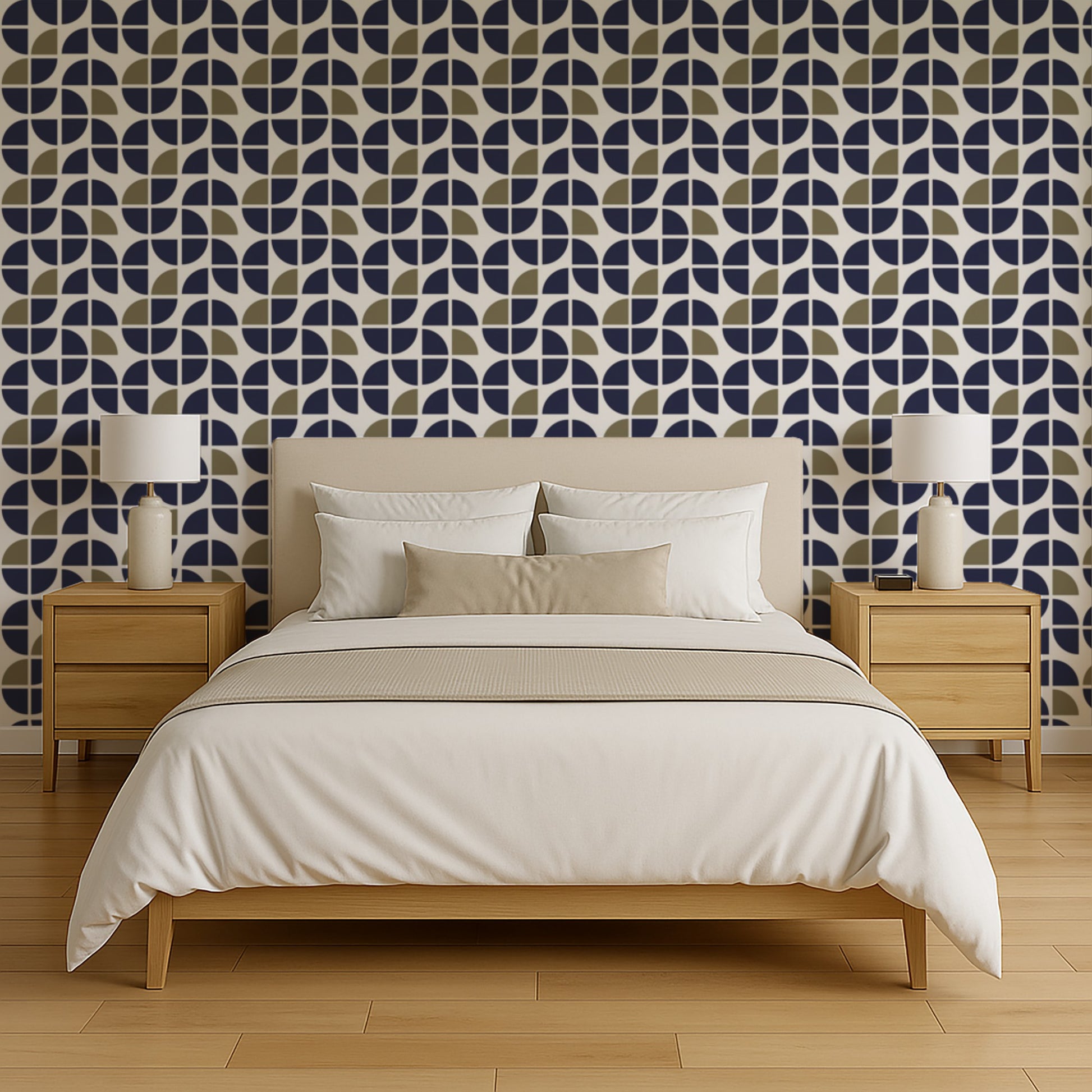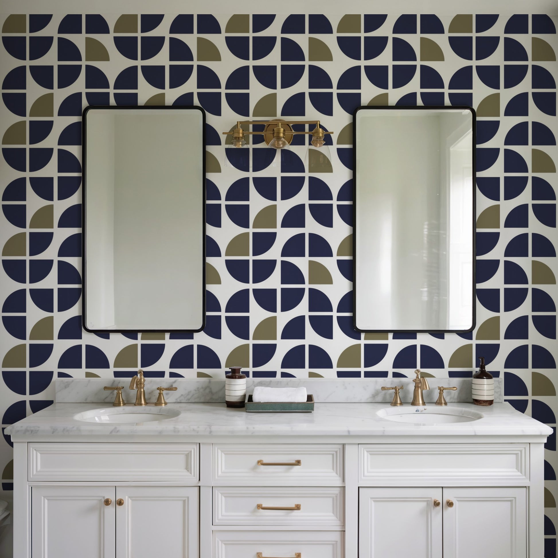 Veer Decor Mod Geo Crescents Navy Peel and Stick Wallpaper Abstract Modern Navy Wallpaper - 8228-AH1