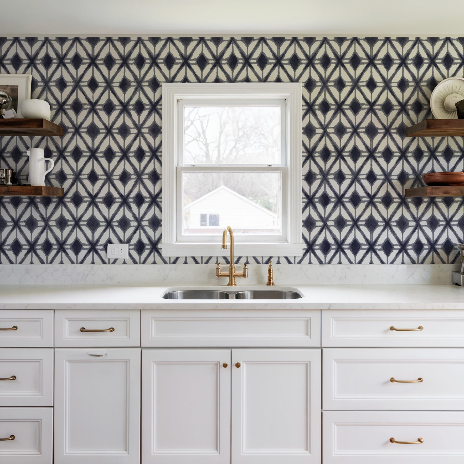 Pattern: 8228-AJ1 / Shibori Geometric Navy Peel and Stick Wallpaper