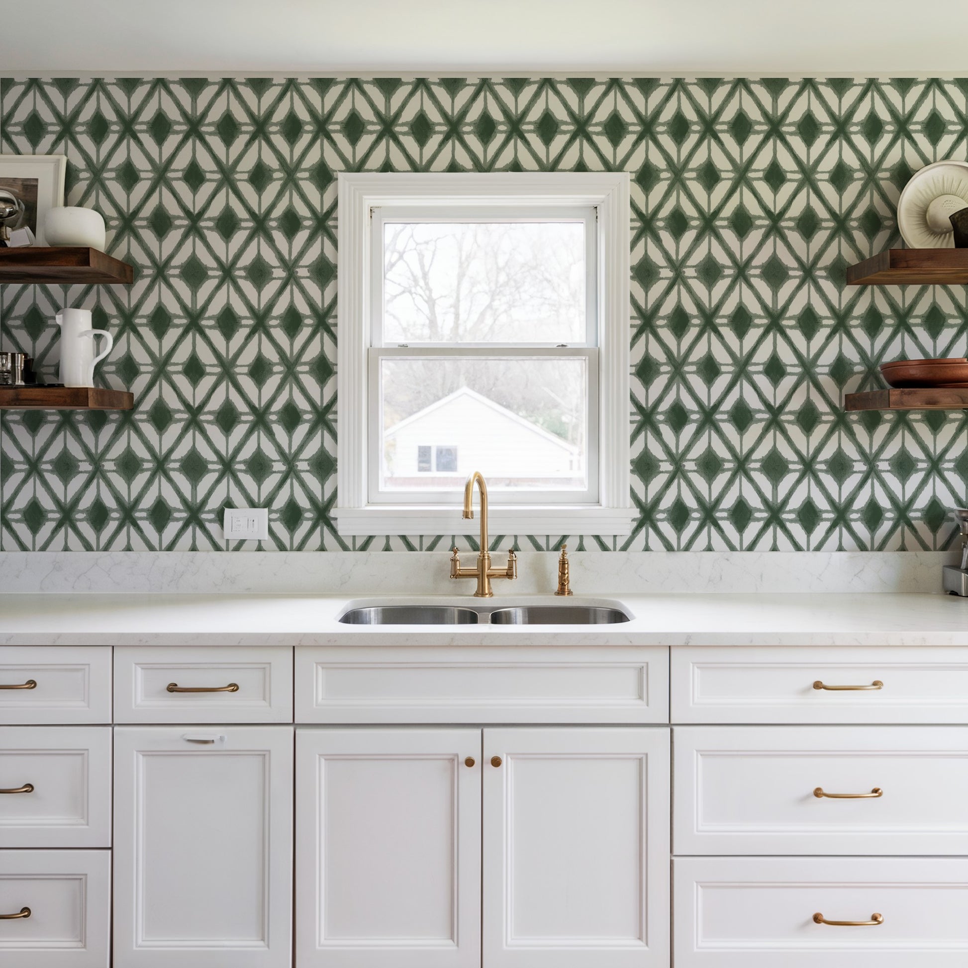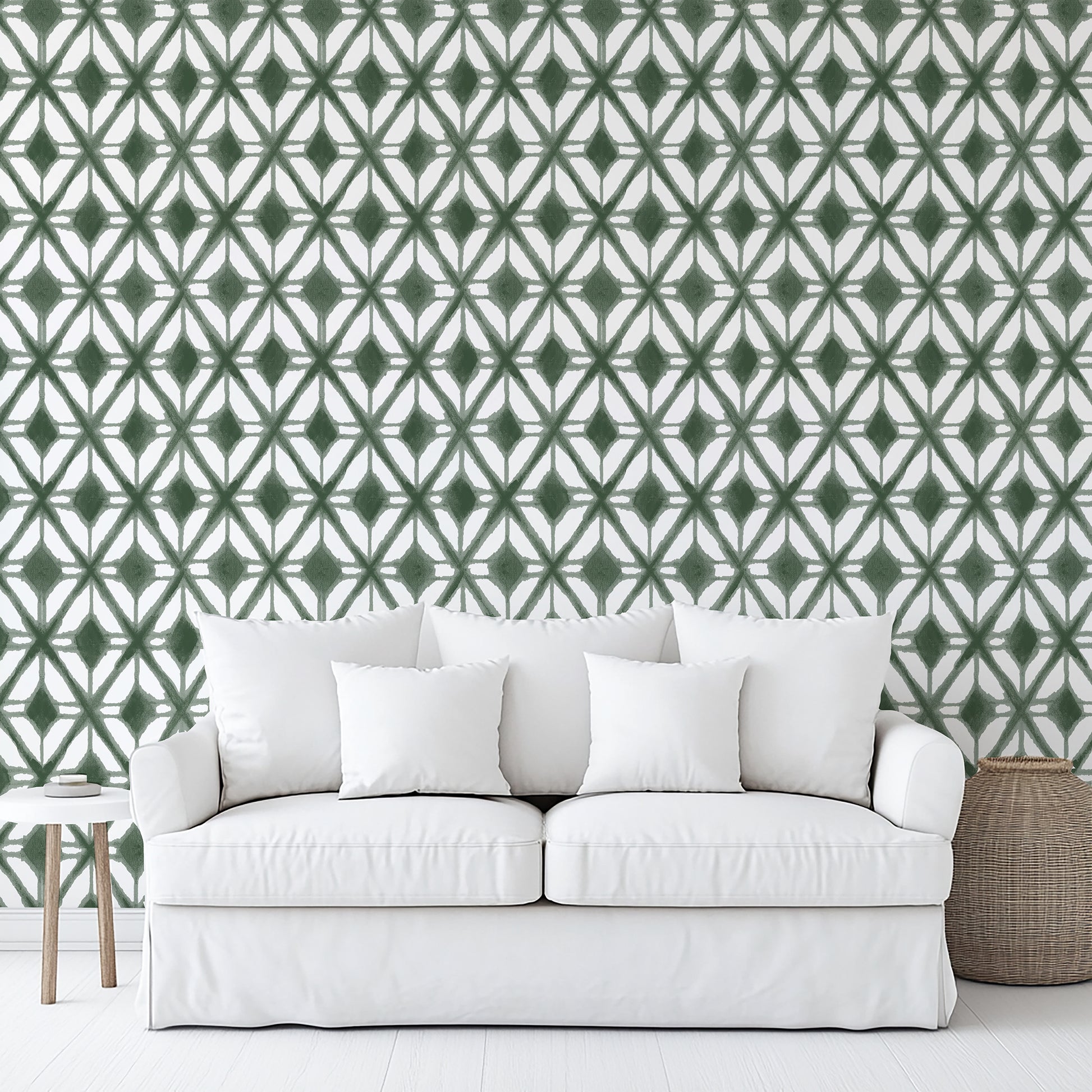 Pattern: 8228-AJ3 / Shibori Geometric Green Peel and Stick Wallpaper