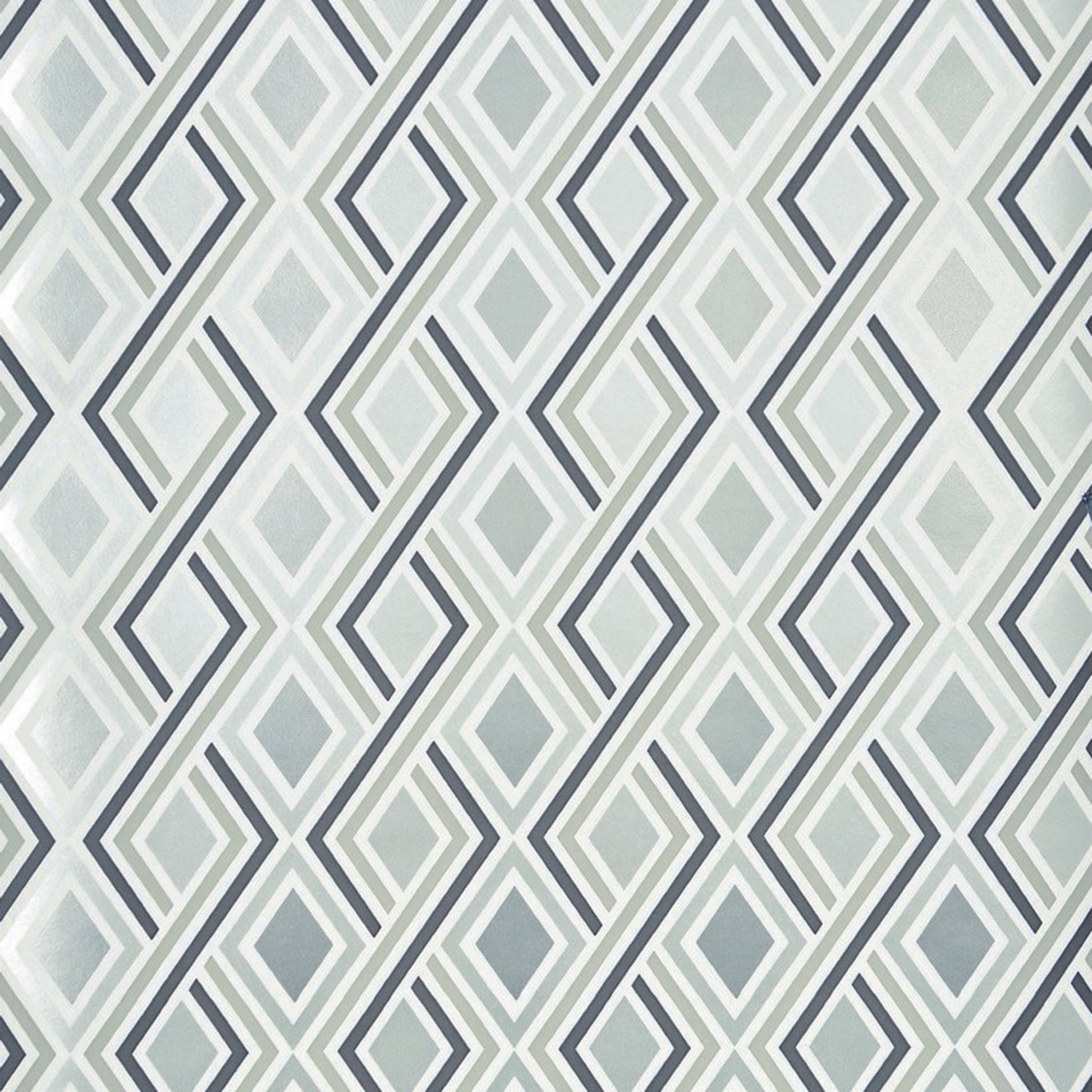 Use:A retro inspired diamond geo wallpaper, outlined in pearlescent inks. In hues of gray, silver and cream coloration.
