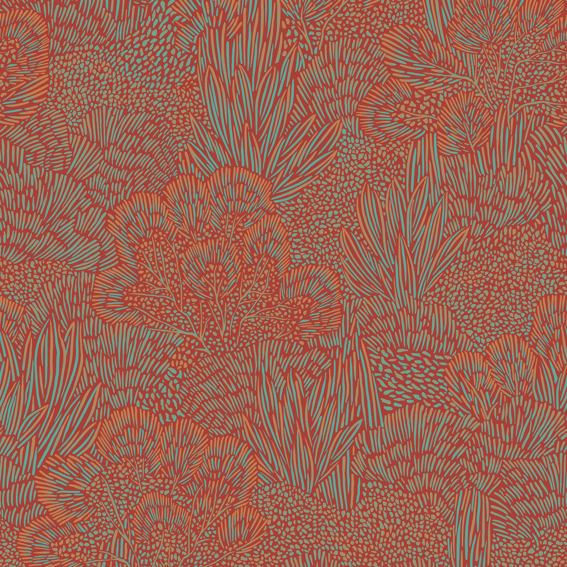 Veer Decor Samba Botanica Red and Blue Wallpaper Floral Mid Century, Transitional, Contemporary, Traditional Red Wallpaper - 8251-AG3