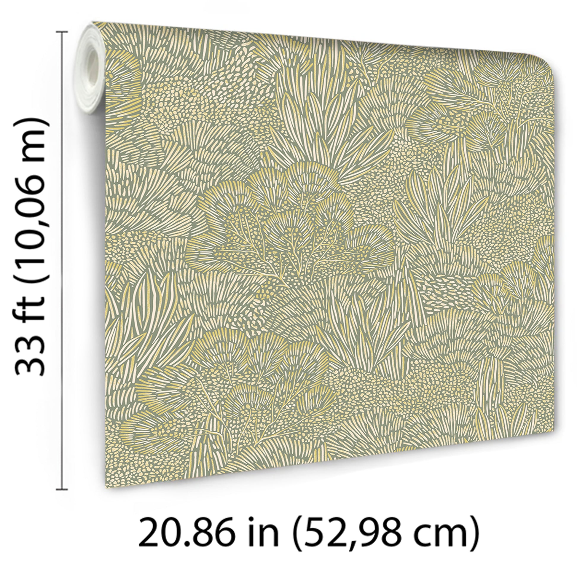 Veer Decor Samba Botanica Green and Gold Wallpaper Floral Mid Century, Transitional, Contemporary, Traditional Green Wallpaper - 8251-AG4