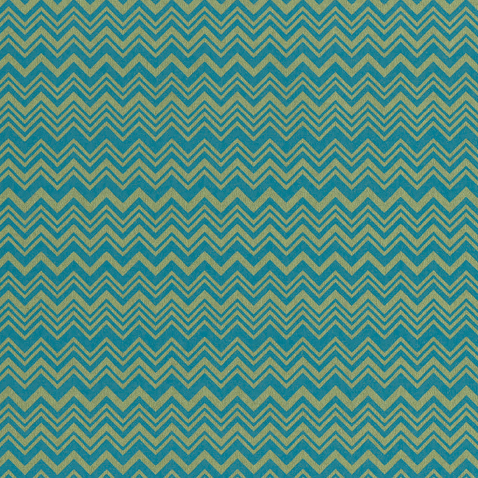 Use:A Missoni Home small chevron design wallpaper with alternating colors of teal green and metallic navy blue coloration.