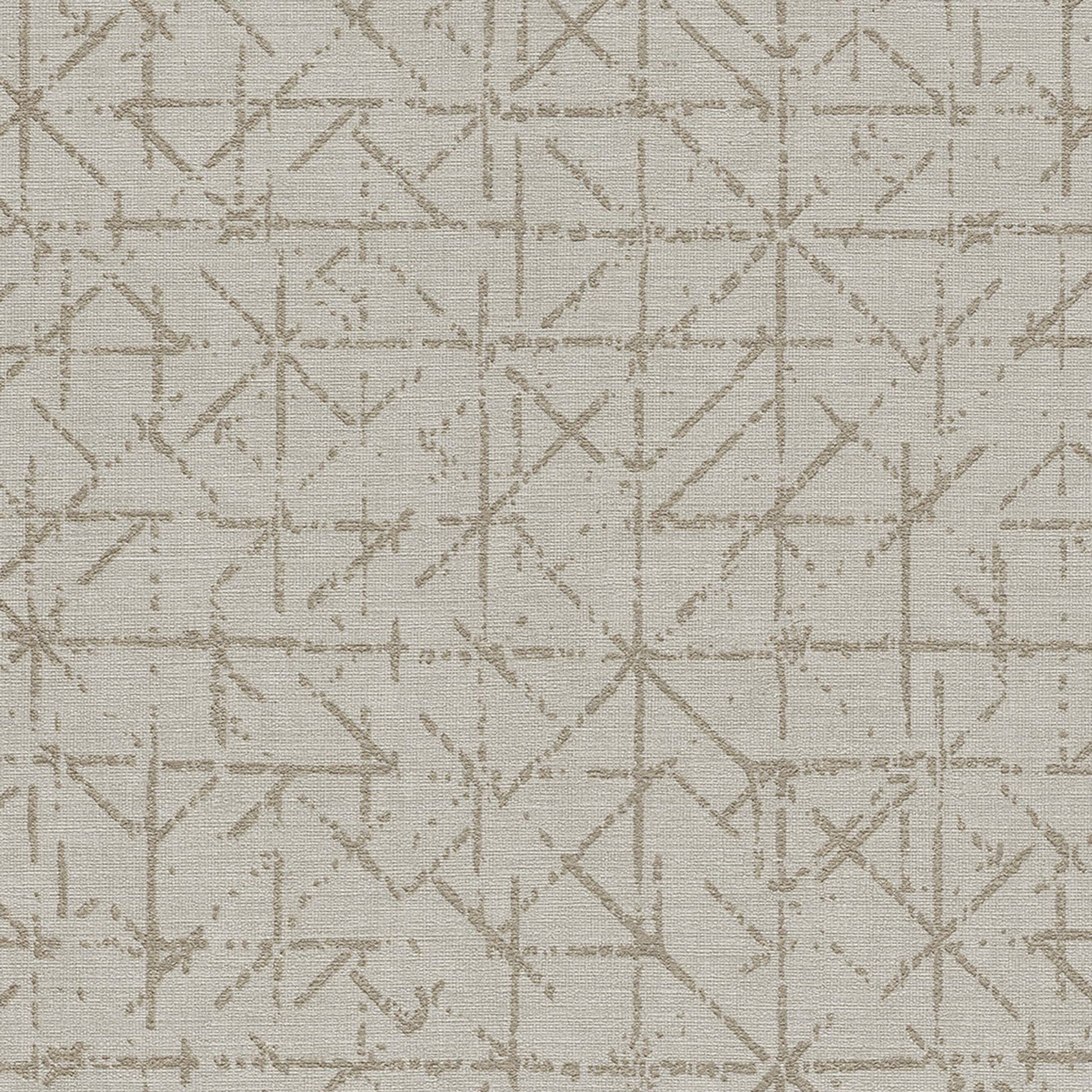 Use:A textural geometric abstract design, giving this wallpaper an industrial look. Shimmering metallic gold design on a light beige ground.