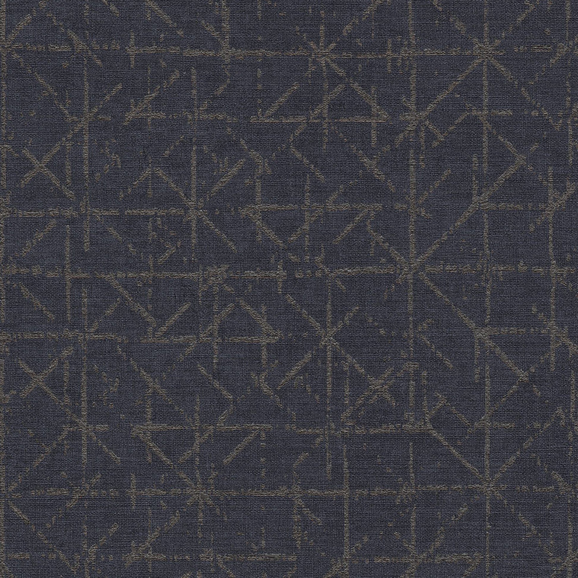 Use:A textural geometric abstract design, giving this wallpaper an industrial look. Shimmering metallic gold design on a dark navy ground.