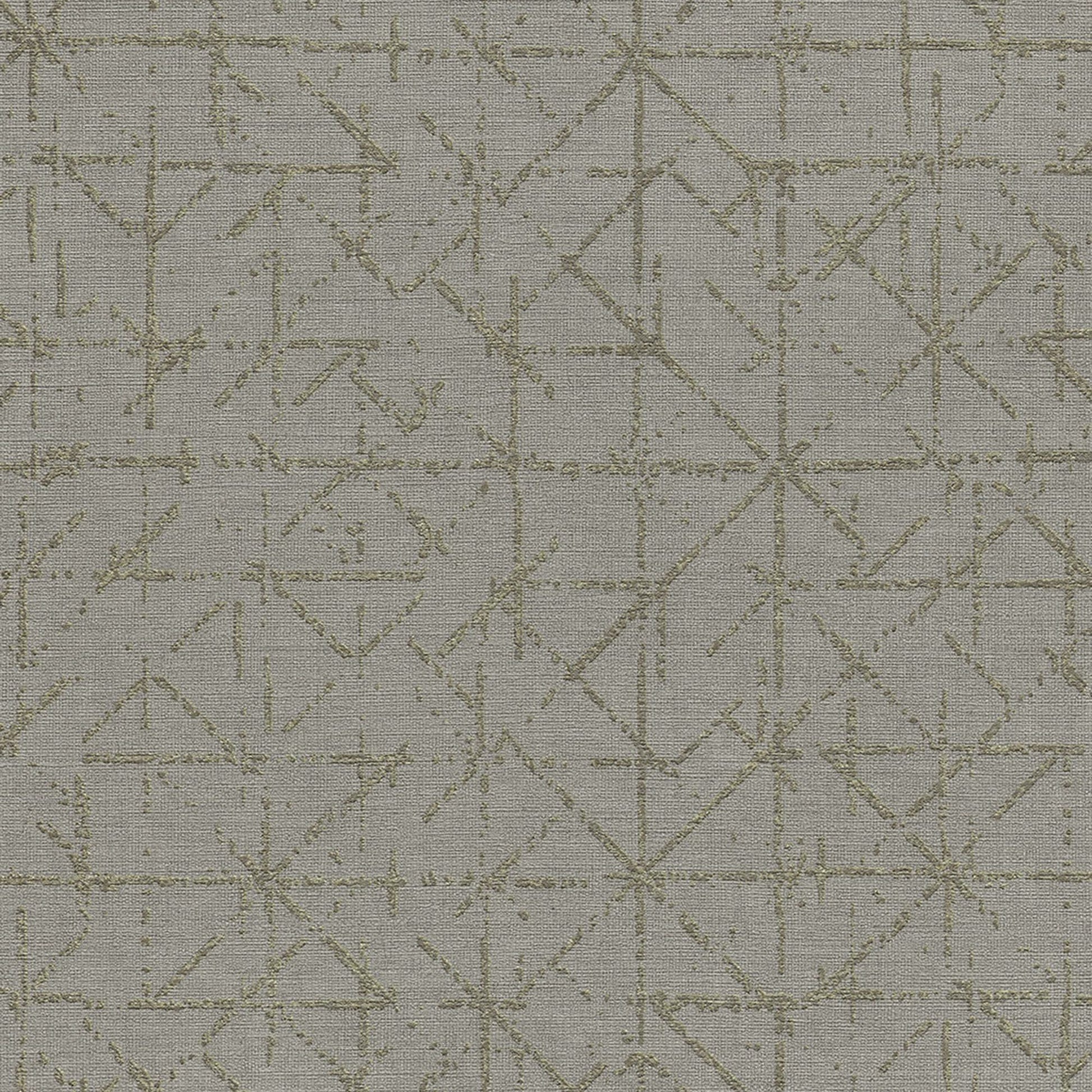 Use:A textural geometric abstract design, giving this wallpaper an industrial look. Shimmering metallic gold design on a sage greenground.