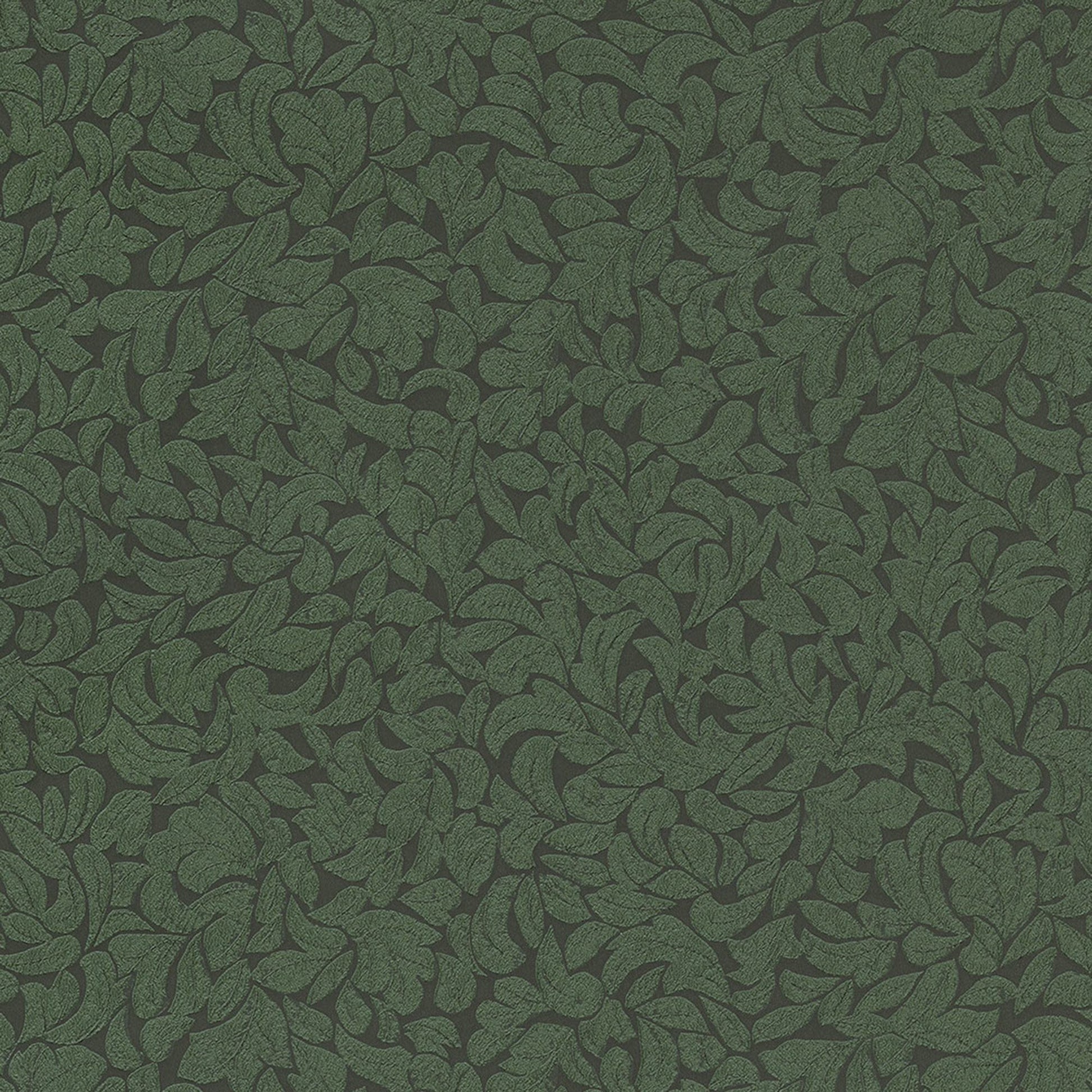 Use:An embossed leaf design wallpaper. In a metallic forest green coloration.