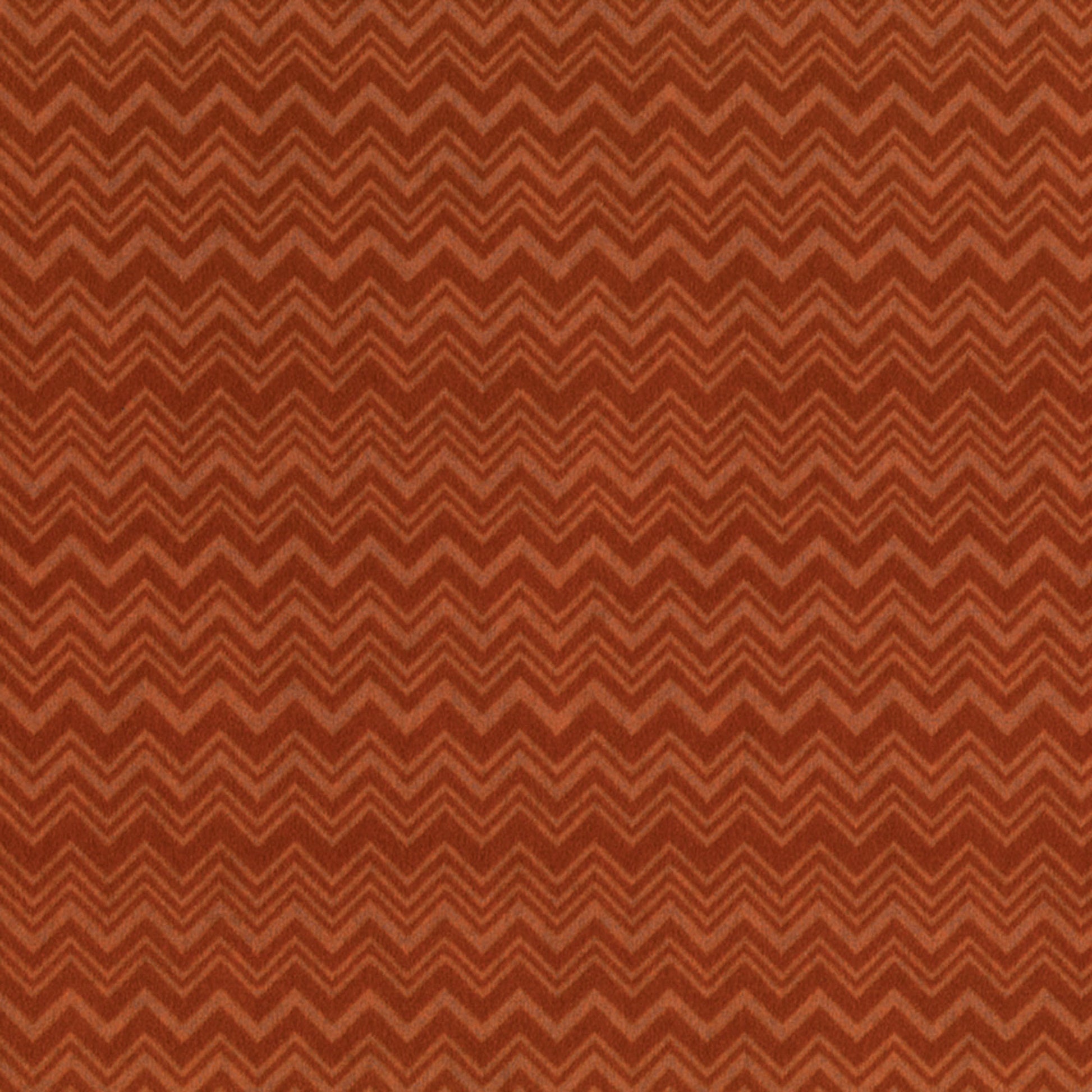 Use:A Missoni Home small chevron design wallpaper with flocking. Burnt orange coloration on a metallic ground.