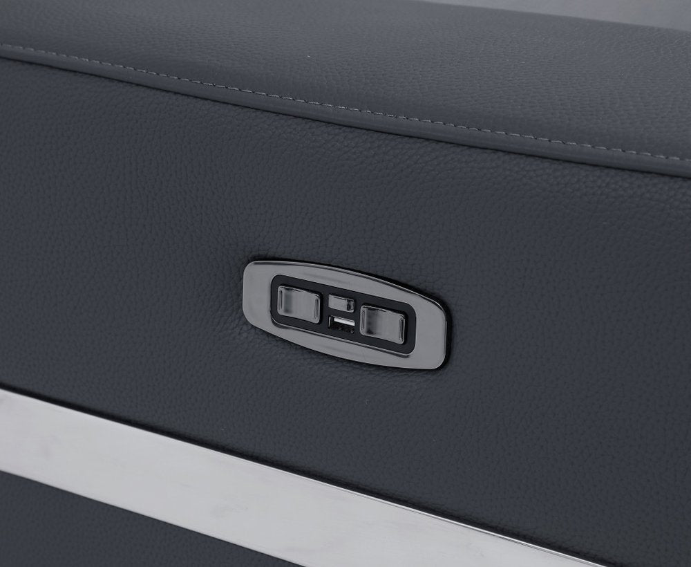 83" Dark Gray Italian Leather USB Reclining Sofa With Silver Legs