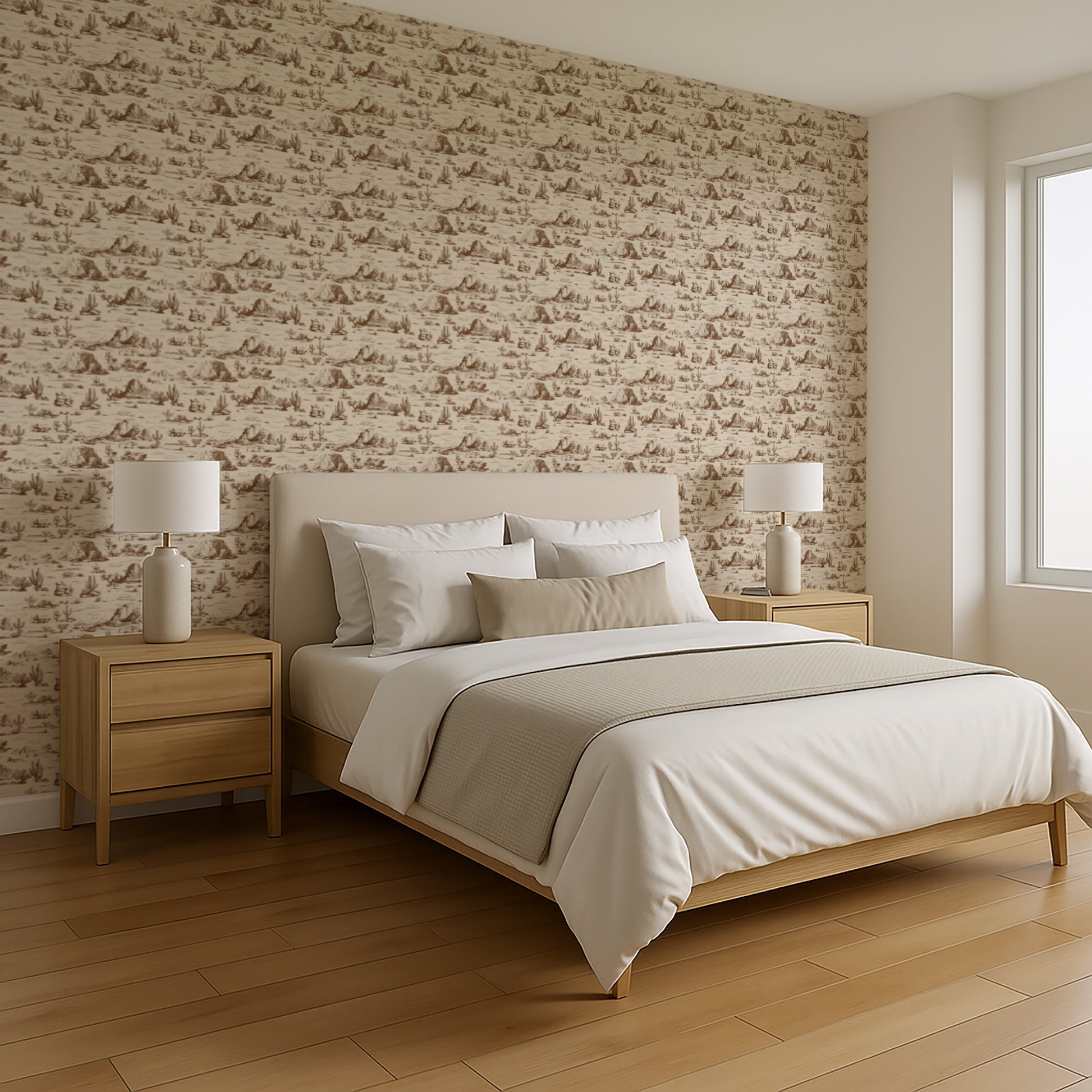 Veer Decor Area 51 Novelty Toile Brown Peel and Stick Wallpaper Landscape, Novelty, Patterns Transitional, Traditional, Novelty Brown Wallpaper - 8335-AA2