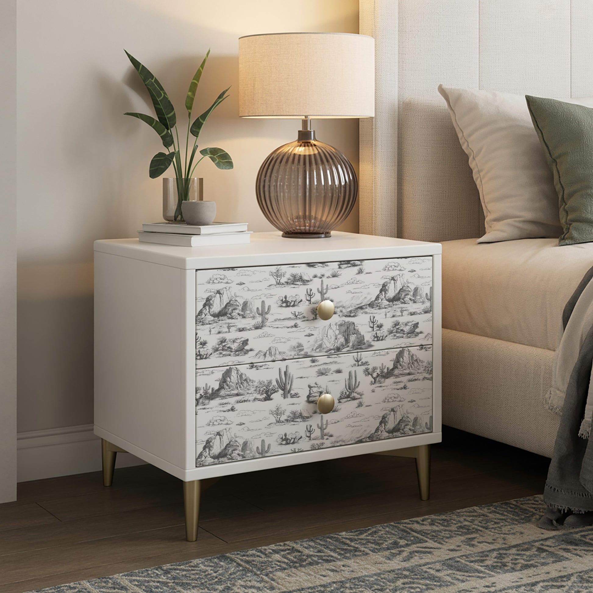 Use:Introducing our peel & stick ?Area 51 Toile? wallpaper ? a clever and curious twist on traditional toile design. At first glance, it appears to be a classic pastoral print, with finely detailed illustrations of desert landscapes, rugged rock formations, and iconic southwestern cacti. But take a closer look? is there something hiding behind that cactus? Are these U.F.O.s on the skyline? Inspired by the legends of Roswell and the enduring mystery of Area 51, this wallpaper invites a second glance?and maybe even a double take. Subtle, tongue-in-cheek details are tucked into the scene, adding a playful narrative element to your walls. It?s refined, a little rebellious, and perfect for interiors that love a bit of the unexpected. Our wallpaper is crafted from premium, repositionable material for easy application and mess-free removal. Whether you're decorating a hallway, powder room, or reading nook, this Area 51 Toile adds design, intrigue, and a story worth telling..