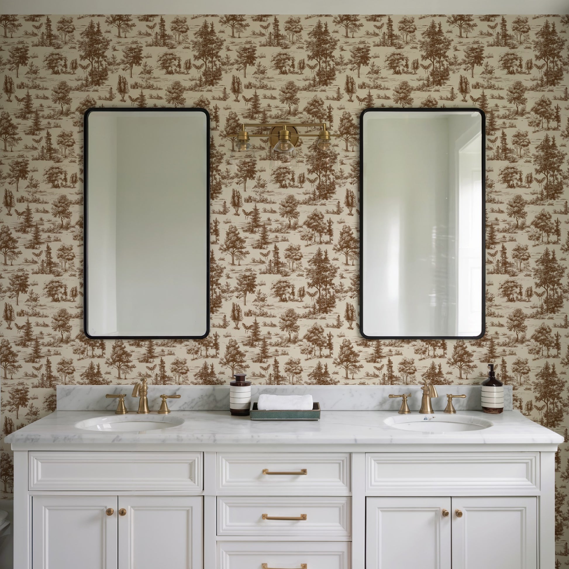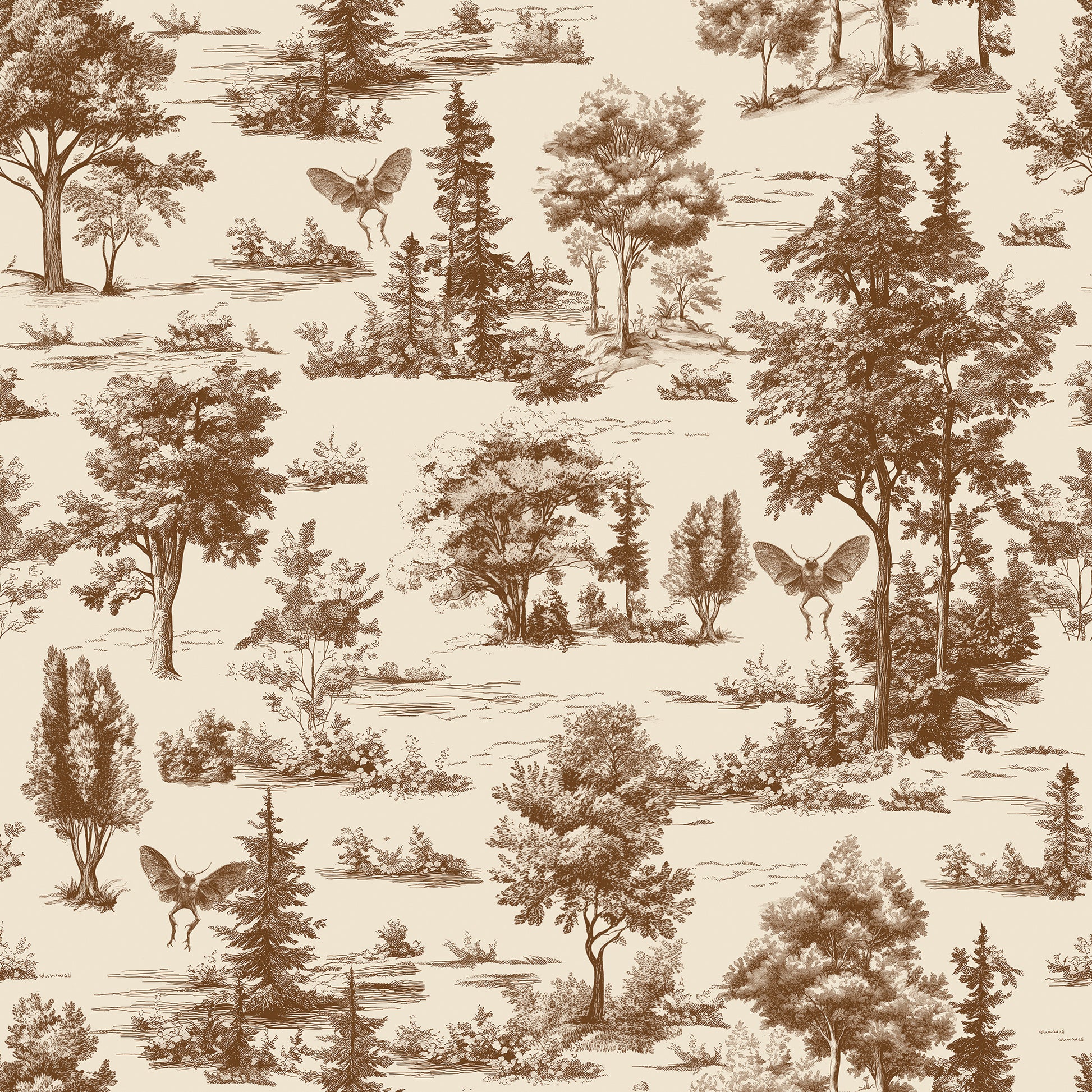 Veer Decor Mothman Novelty Toile Brown Peel and Stick Wallpaper Landscape, Novelty, Patterns Transitional, Traditional, Novelty Brown Wallpaper - 8335-AC1