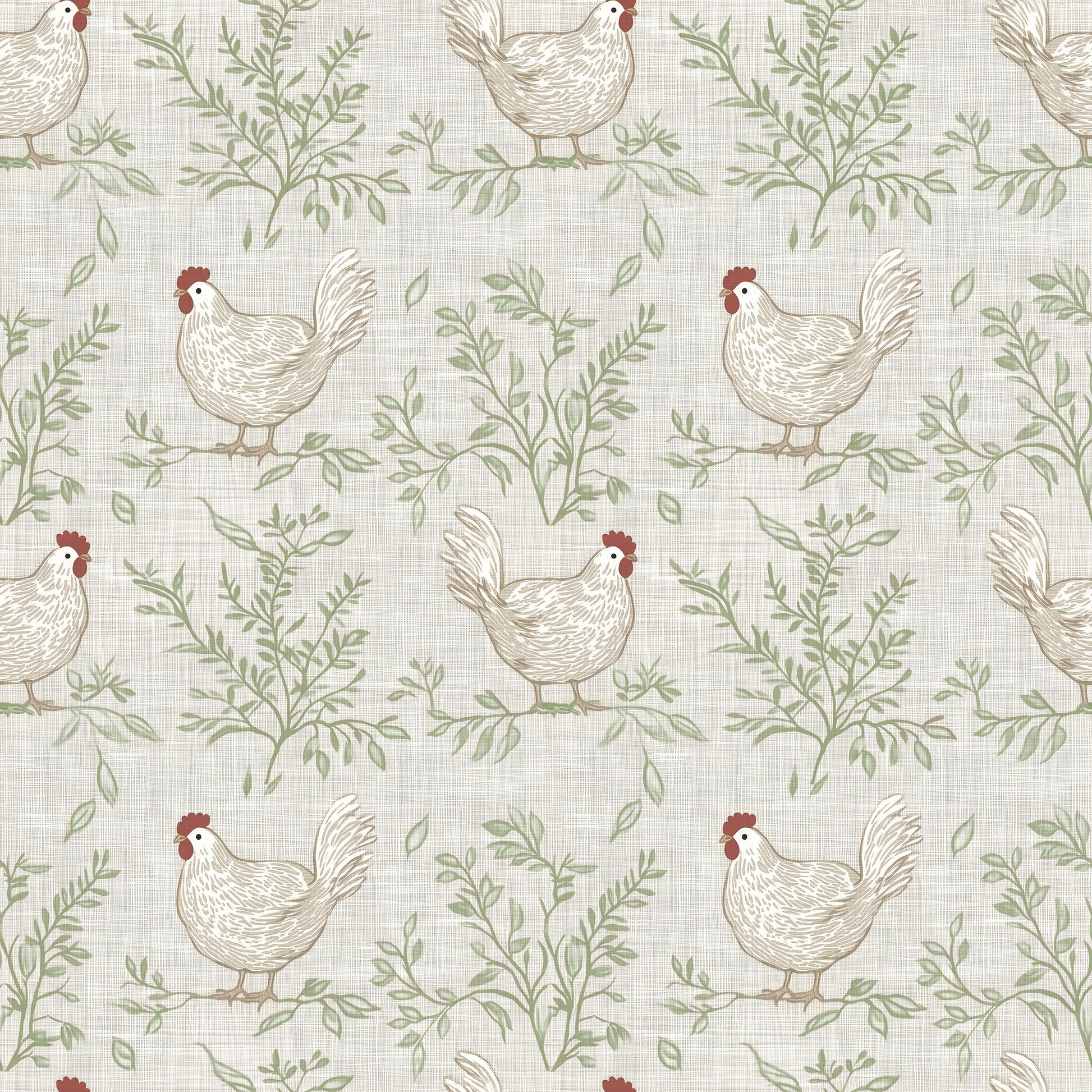 Use:Our Cluckingham Toile brings a refined dose of farmhouse charm to your walls with a wink of whimsy. Inspired by classic French toile patterns, this design features proud hens nestled among delicate sprigs of herbs and wildflowers, all set against a soft, linen-like backdrop. It?s equal parts rustic and regal?like something you?d find in a countryside manor with a very stylish chicken coop. Perfect for kitchens, breakfast nooks, laundry rooms, or any space that could use a little pastoral personality, Cluckingham Toile adds whimsy chic, warmth, and just the right amount of cluck-worthy character. Our wallpapers are made from premium, repositionable material that ensures easy, seamless application?no glue, no water, no mess. And when you're ready to freshen up your space, each strip removes cleanly in full pieces without damaging your walls. With Veer?s Cluckingham Toile, your walls get a playful nod to country living?wrapped in timeless toile elegance..