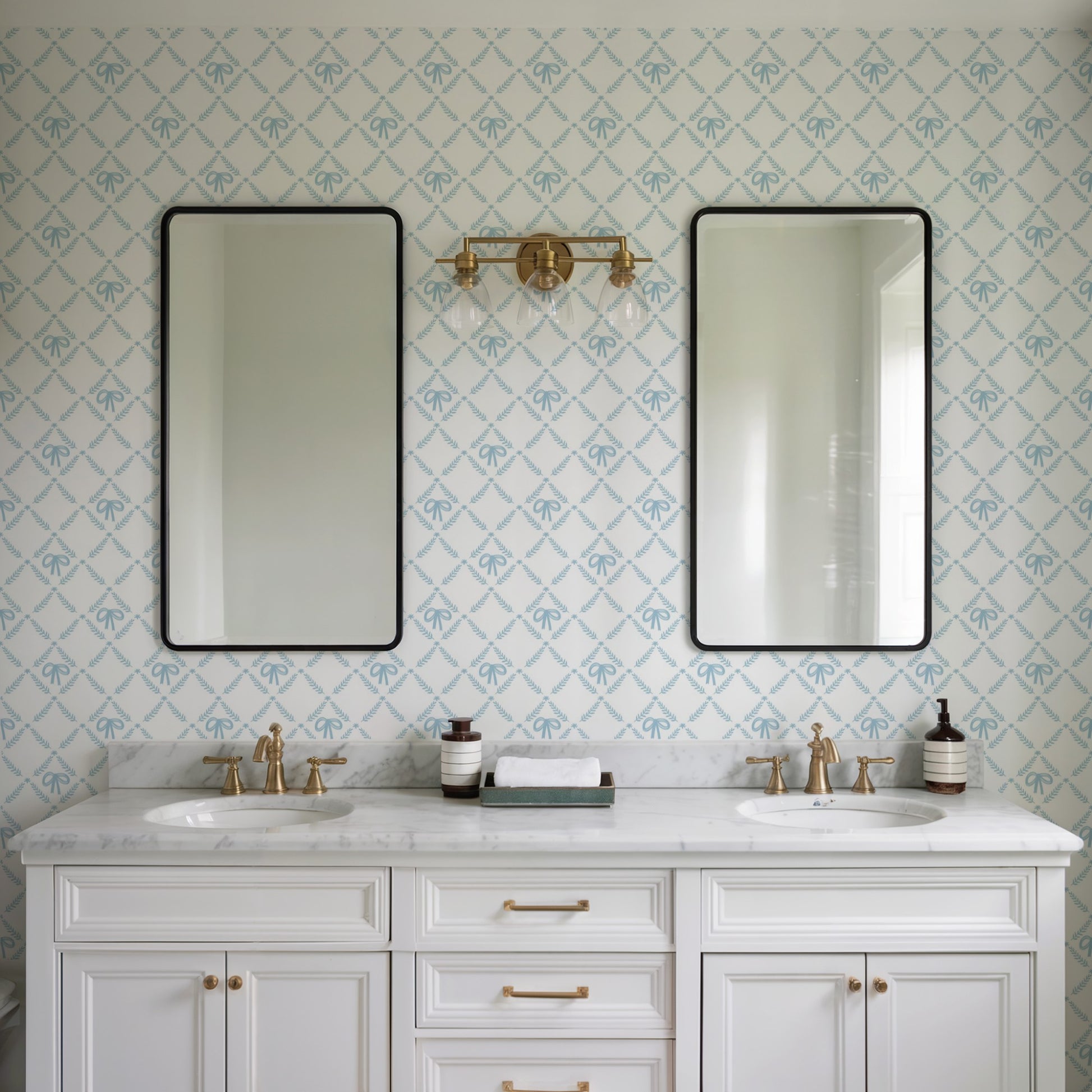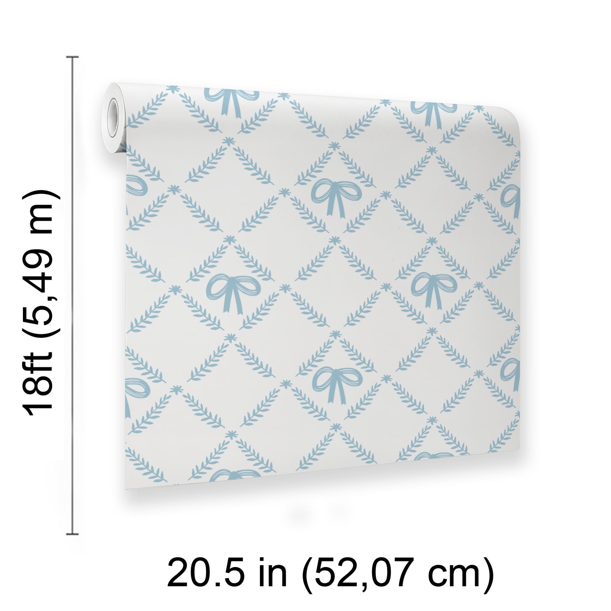 Veer Decor Heirloom Bow Trellis Blue Peel and Stick Wallpaper Children, Patterns Kids, Novelty Blue Wallpaper - 8335-AH2