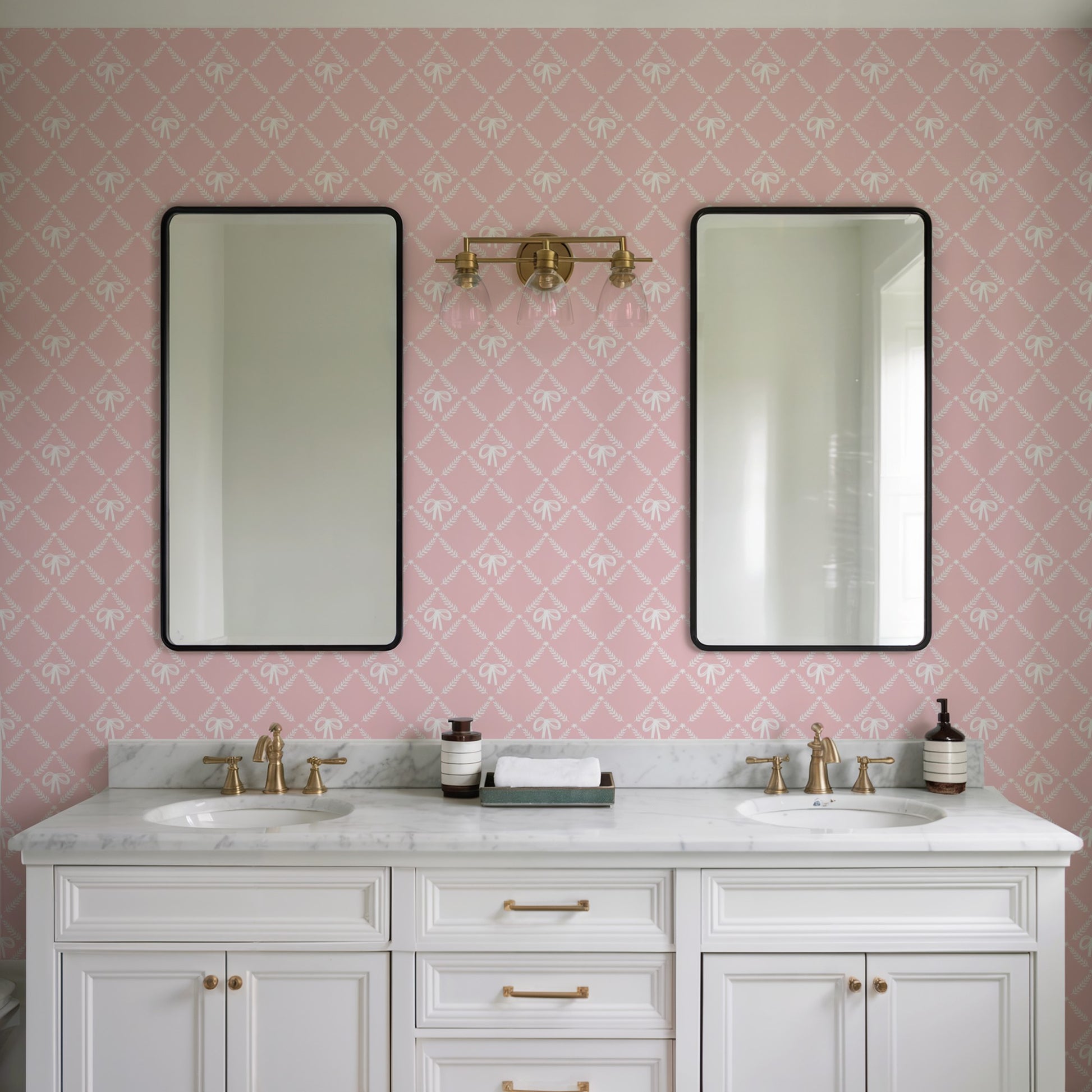 Veer Decor Heirloom Bow Trellis Pink Peel and Stick Wallpaper Children, Patterns Kids, Novelty Pink Wallpaper - 8335-AH3