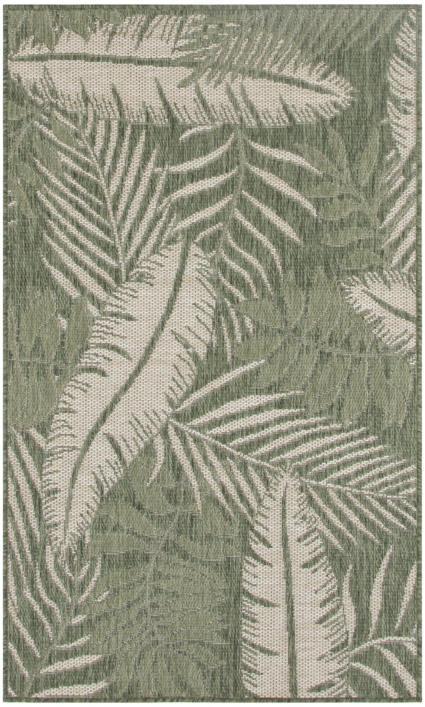About Us: Tropical with a touch of modern, the Garden Oasis Collection of outdoor rugs transforms any space into a breezy retreat. With a modern color palette and low-maintenance construction, these flat weave rugs are built for performance but don?t sacrifice style. The lightweight construction lays flat quickly and doesn?t shed, so you can spend less time waiting for your space to come together and get right to relaxing with friends and family. Enjoy vacation vibes from the comfort of your backyard with this green and ivory outdoor rug from the Garden Oasis Collection. The oversized tropical leaf pattern evokes feelings of lounging by the beach, with subtle tonal variations that add rhythmic appeal. Machine-made from polypropylene yarns for lasting style and all-weather performance, this flatweave rug is great for both indoor and outdoor spaces. Hand washable outdoors: rinse with a hose and air dry.