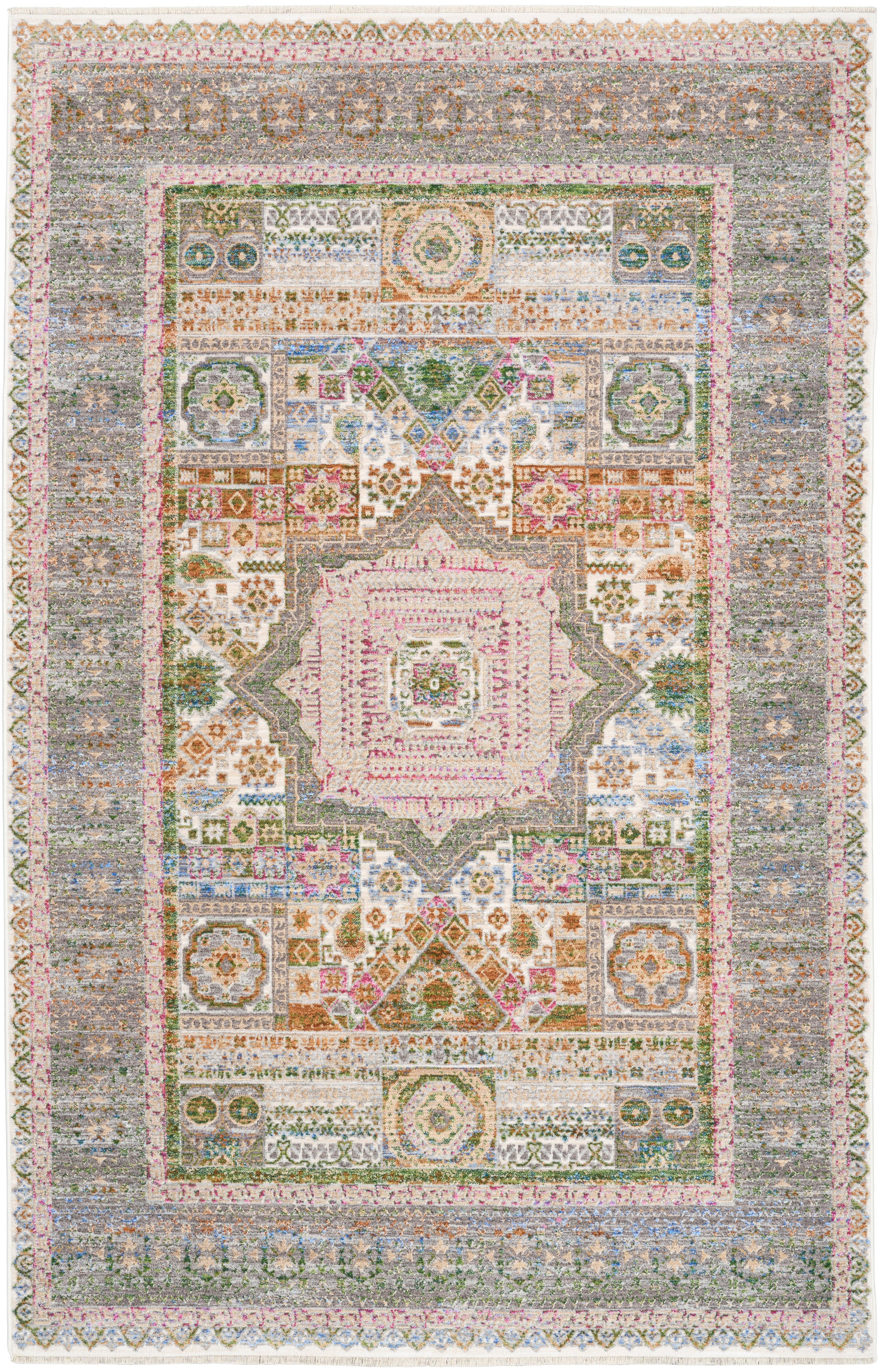 About Us: The Vintage Harmony Area Rug collection blends timeless elegance with modern versatility. Delicate florals, intricate patterns, and vibrant hues create an ethereal charm, enhanced by a soft sheen that brings an inviting pop of color to neutral and maximalist rooms alike. These vintage-inspired rugs are made from 100% polyester with short fringe edges and a low-profile, low-maintenance construction that feels great on bare feet. With its classic geometric design and richly balanced colors, this vintage-style rug from the Vintage Harmony collection adds depth and character to your home. The intricate traditional pattern is enhanced by a silky sheen that beautifully reflects and captures changes in natural light. Subtly raised yarns add an extra dimension for added depth. Finished with short fringe edges in a low-profile construction that feels delightfully soft to the touch. 100% polyester.