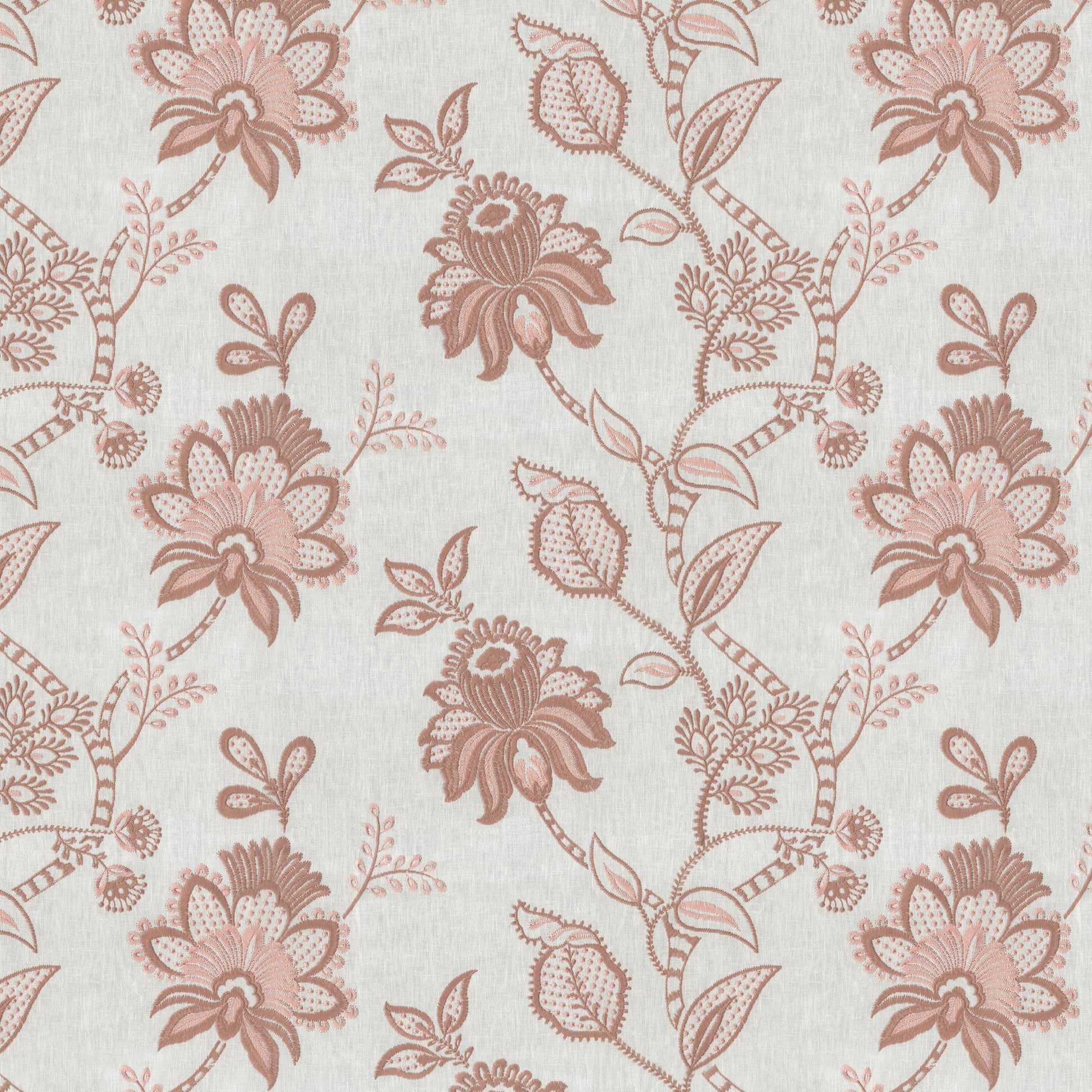 Use:This classic Jacobean floral embroidery fabric will liven up any room with its multi-purpose use. Blush pink embroidery yarns on a white base cloth.